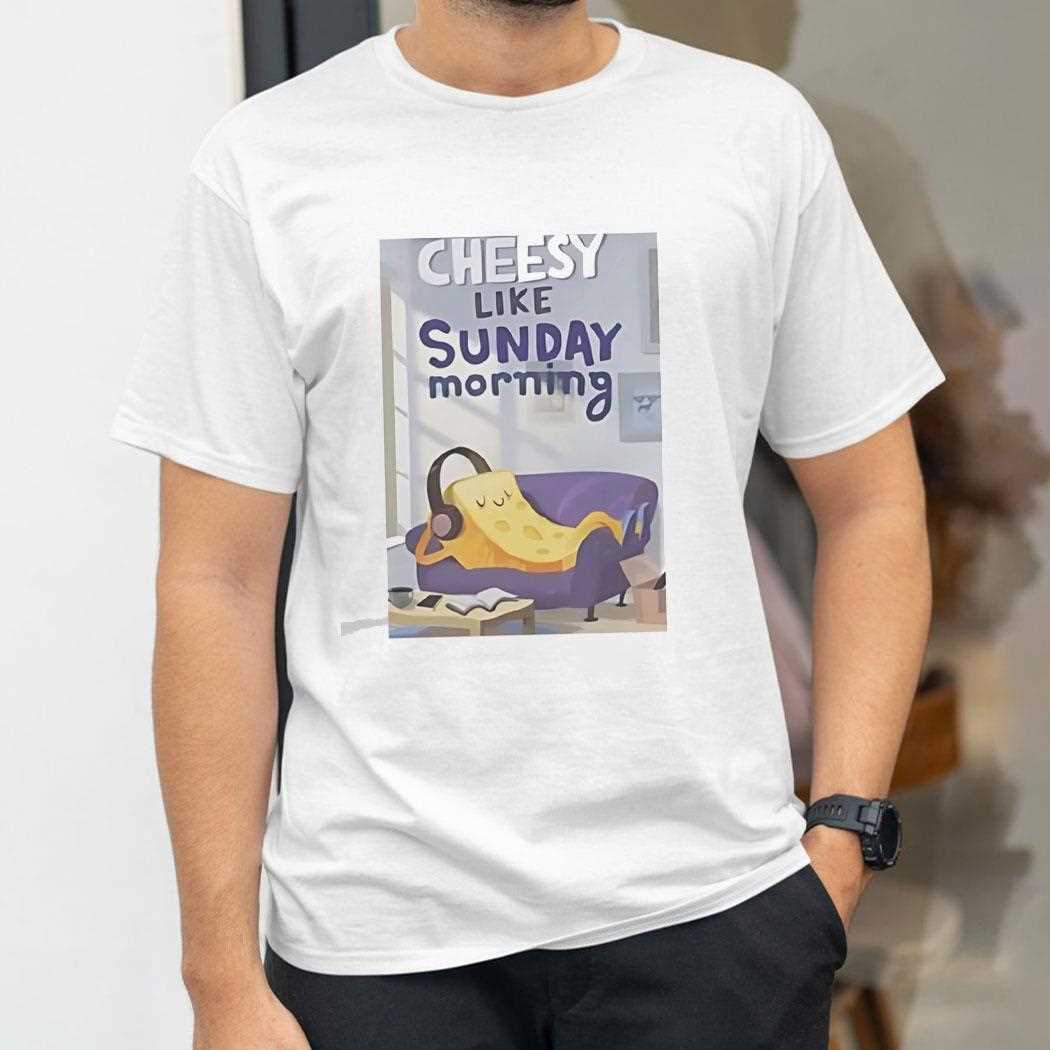Celebrate the ultimate comfort song and the ultimate comfort food with this clever “Cheesy Like Sunday Morning” graphic. This design is a nostalgic and humorous tribute, featuring a retro-style illustration of a delicious, grilled cheese sandwich set in a vintage advertisement aesthetic. The warm, amber tones and grainy textures evoke the feeling of a lazy weekend morning in a classic American diner. The typography is a playful nod to the famous lyrics, creating a look that is both kitschy and cool. Printed on a soft-touch, premium cream-colored tee, this shirt offers a relaxed fit and exceptional breathability. It’s a fantastic gift for music lovers, foodies, and anyone who appreciates a well-crafted pun. The high-definition screen print ensures the cheese looks melt-in-your-mouth realistic. Elevate your weekend uniform with a shirt that is as smooth and satisfying as the tune itself. Indulge in some classic style—purchase your Cheesy Like Sunday Morning Tee today and keep it light!. T-shirt !
