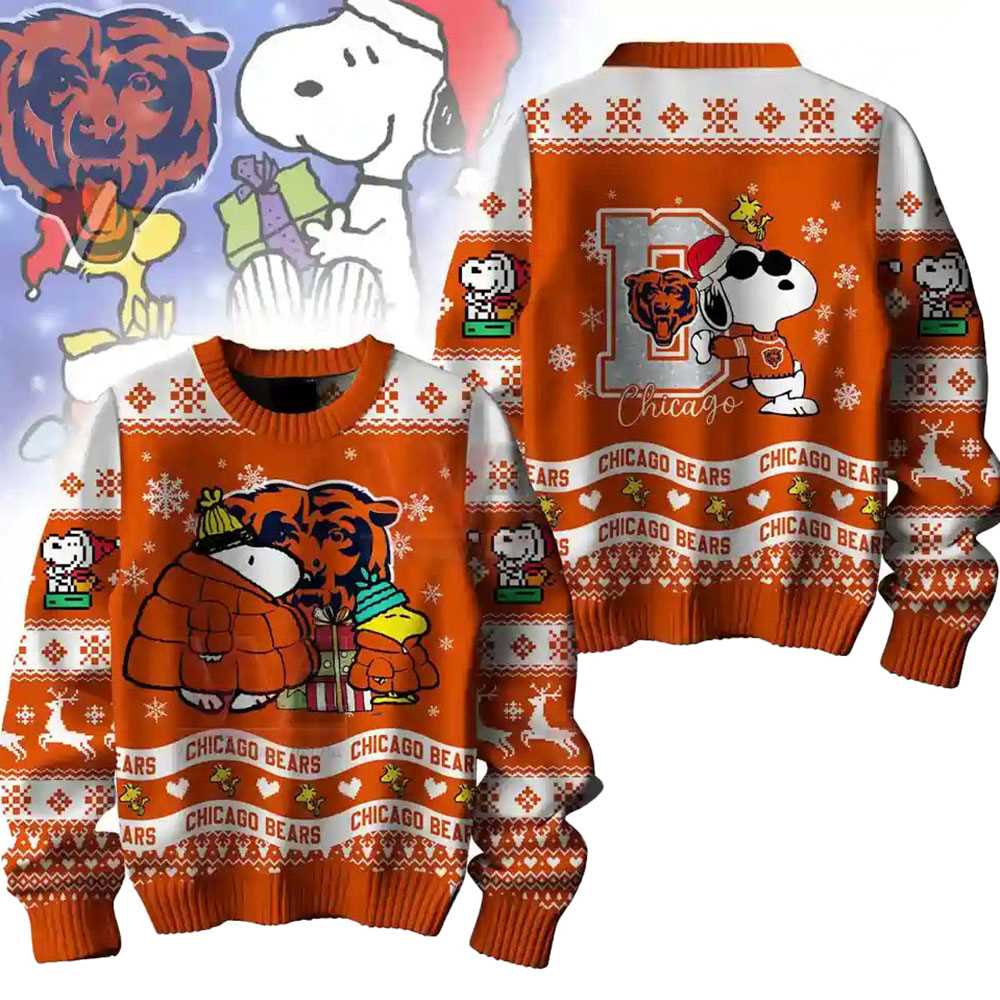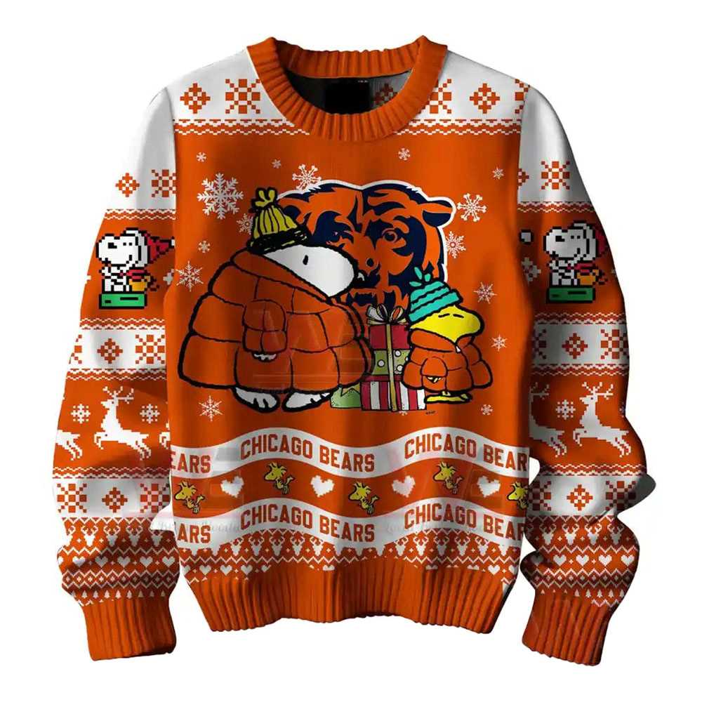 Chicago Bears Snoopy Woodstock Puffer Jacket Ugly Christmas Sweater