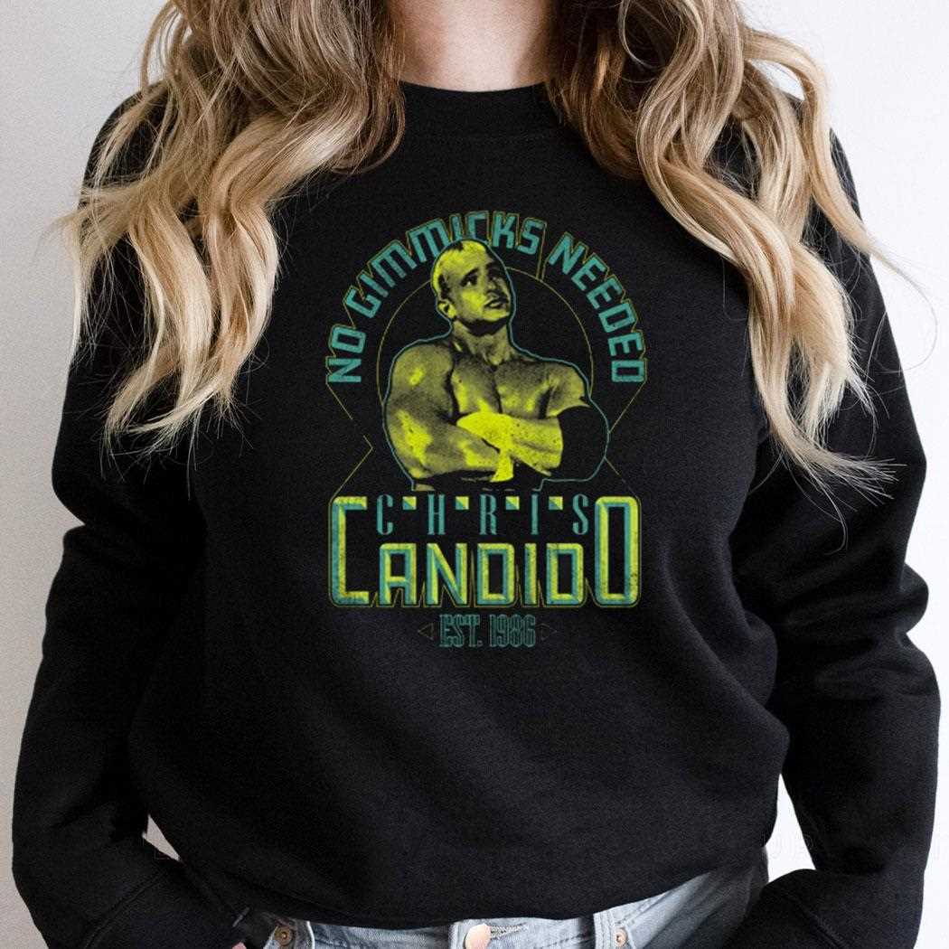 Pay tribute to a true wrestling technician with this Chris Candido memorial shirt. The design features a powerful image of Candido with the legendary slogan “No Gimmicks Needed,” celebrating his pure talent and dedication to the sport. The green and white accents pop against the black fabric, creating a look that is both respectful and stylish. It’s a must-have for hardcore wrestling fans who appreciate the art of the “Triple Threat.” Honor the legacy of a man who gave everything to the ring. Grab your Chris Candido No Gimmick Needed Shirt and honor a legend!. T-shirt !