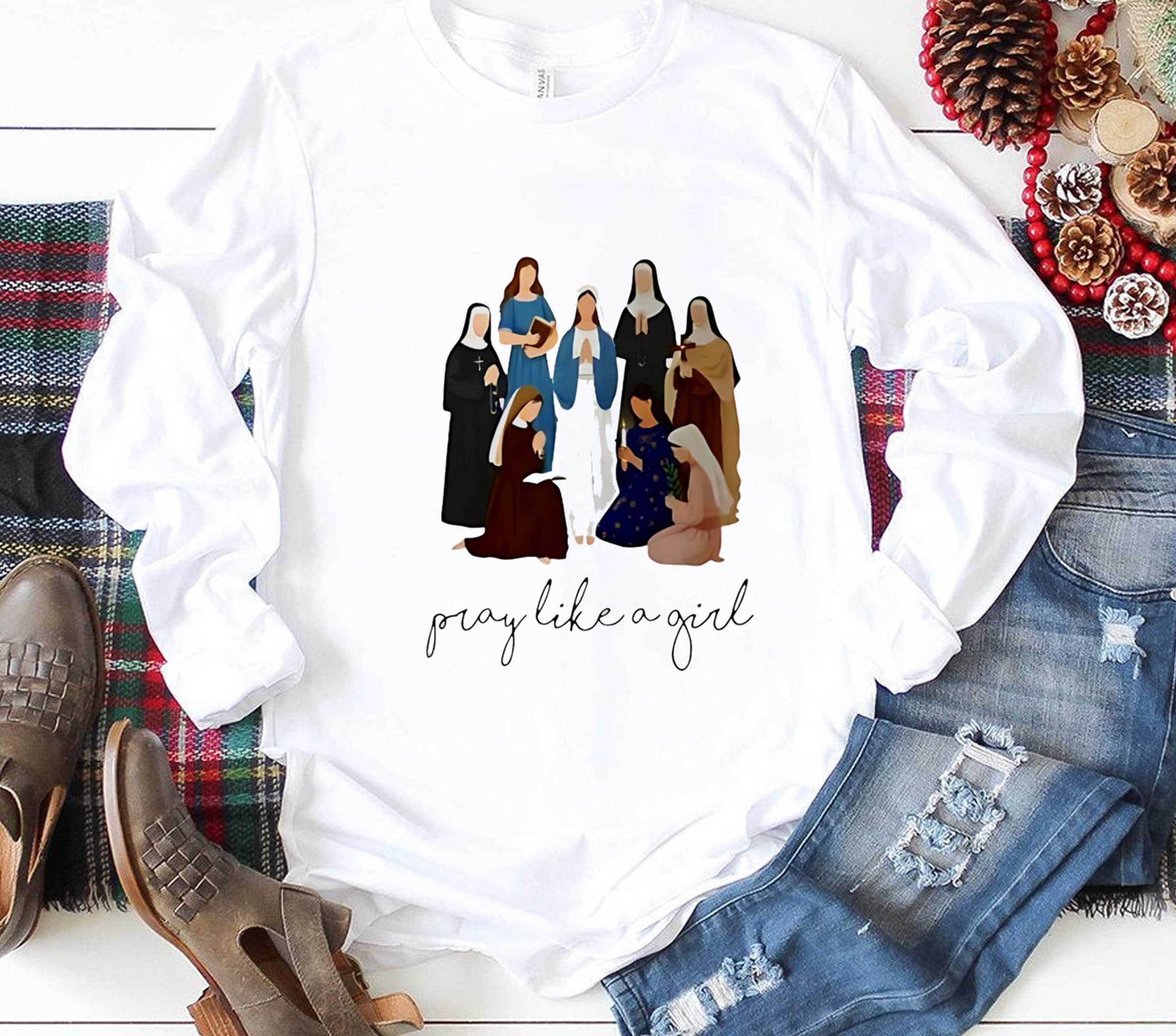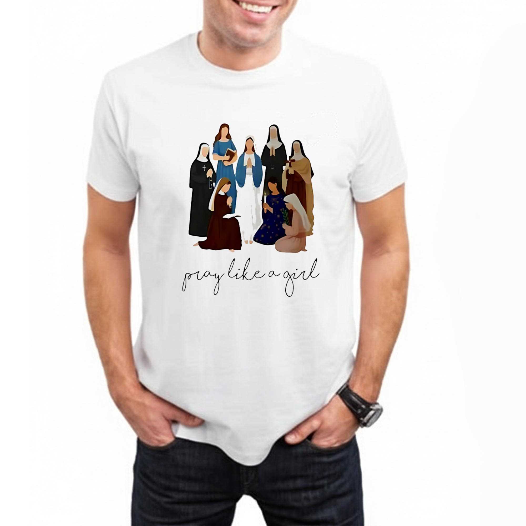 Celebrate the power of faith and the strength of women with the Christian Pray Like A Girl Tee, a design that is as beautiful as it is meaningful. This shirt features a soft, artistic illustration of three women in prayer, rendered in a palette of warm, earthy tones that evoke a sense of peace and sisterhood. The phrase “pray like a girl” is scrawled underneath in a delicate, handwritten-style font, reclaiming a classic phrase and turning it into a badge of spiritual empowerment. This design is a tribute to the quiet resilience and the profound impact of women in their faith communities. Set against a clean white background, the artwork feels light and inspiring, making it a perfect choice for casual church events, Bible study groups, or daily wear as a reminder of one’s spiritual roots. The tee is crafted from ultra-soft, 100% ringspun cotton, offering a gentle feel against the skin and a flattering, comfortable fit. It serves as a great conversation starter about faith, community, and the unique ways women connect with the divine. This is more than just a graphic tee; it’s a wearable encouragement for yourself and those around you. It honors a tradition of grace and prayerful strength. Support the message of empowerment and spirituality in style. Add a touch of inspiration to your everyday rotation. Purchase your Christian Pray Like A Girl Tee today and share the light!. T-shirt !