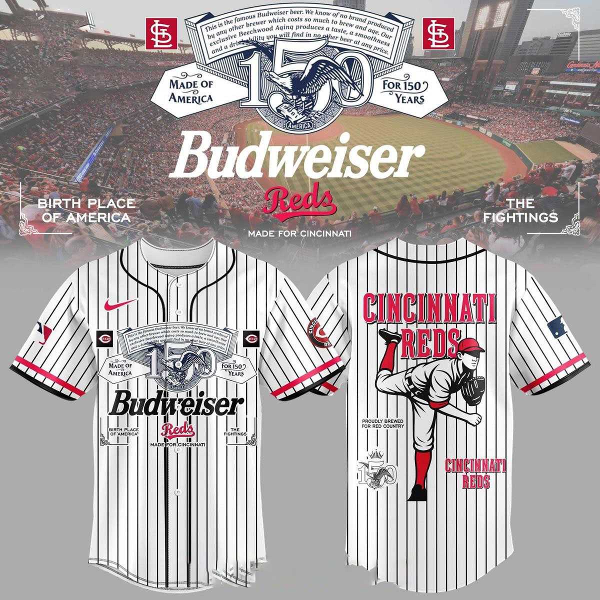 Cincinnati Reds Budweiser 150 Years 2026 Baseball Jersey
