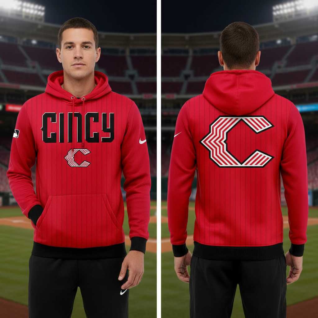 Get ready to root for your team with the audacious Cincinnati Reds New Uniform All Red 2026 Hoodie Tee, a vibrant crimson masterpiece that screams fan pride! The front prominently features ‘CINCY’ in striking black block letters with a crisp white outline, positioned above a dynamic, red, white, and black stylized ‘C’ logo, boasting a unique jagged-edge design on its left side and clean stripes on the right, all set against a subtle vertical striped red fabric. The back mirrors this bold identity with an oversized rendition of the same distinctive ‘C’ logo, ensuring your loyalty is visible from every angle. This design playfully imagines a sleek, futuristic look for the Reds, combining modern aesthetics with classic team spirit.