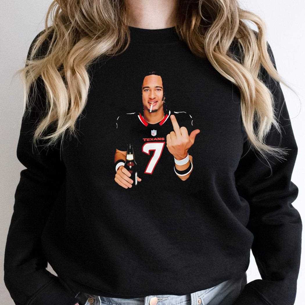 Cj Stroud Houston Texans Smoking And Drinking Middle Finger Tee
