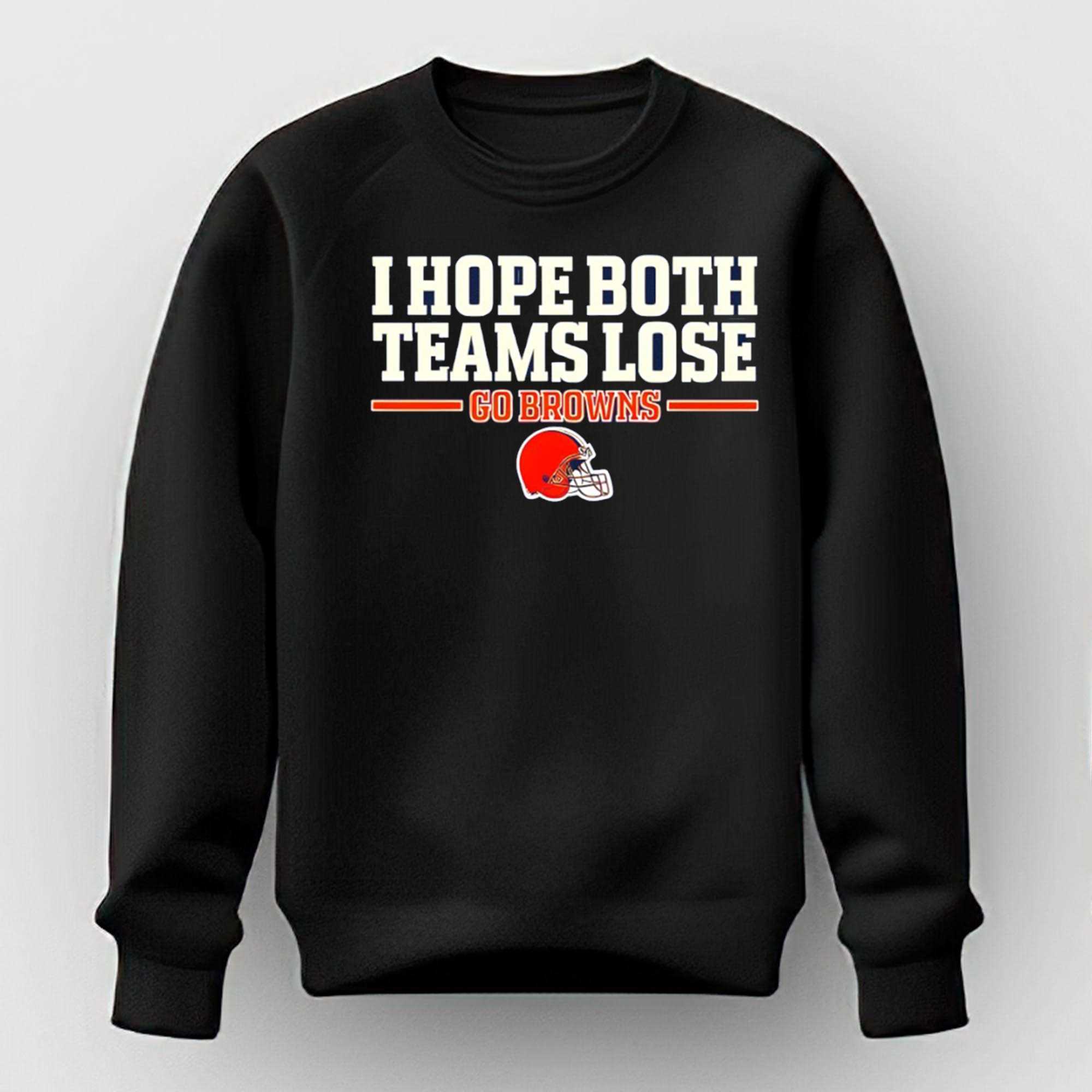 For the members of the “Dawg Pound” who have seen it all, the Cleveland Browns I Hope Both Teams Lose Go Browns Tee is your ultimate seasonal anthem. This design is a masterclass in sports-themed irony, featuring a bold and gritty typographic layout that captures the relentless and often humorous loyalty of Cleveland fans. The text is rendered in the iconic orange and brown palette, set against a deep navy background that mirrors the intensity of a rainy Sunday at Cleveland Browns Stadium. It perfectly encapsulates that classic fan feeling: if the Browns aren’t on the field, you’re not rooting for anyone else’s success. This shirt is crafted from a heavy-weight, durable cotton blend, providing a structured fit and exceptional comfort for those cold lake-effect game days. The print uses high-fidelity inks that won’t crack or peel, ensuring your message stays loud and clear season after season. It represents more than just fan gear; it’s a symbol of resilience and the deep community bonds formed in Northeast Ohio. Whether you’re tailgating with friends or watching from a local bar, this tee ensures you look like a part of the most dedicated fan base in the league. Show the world that your heart belongs to the orange and brown—and only the orange and brown. Honor the hustle and the humor of the city. Order your Cleveland Browns I Hope Both Teams Lose Go Browns Tee today and rep the pound!. T-shirt !