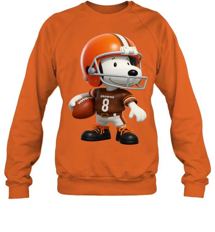| Cleveland Browns Snoopy Football Sweatshirt: Barking Up the Right Tree! | Get ready to cheer on the Browns with the charming Cleveland Browns Snoopy Football Sweatshirt! This warm orange crewneck features Snoopy, dressed to impress in a sleek orange Browns helmet with a white stripe and the number ‘1’ on his jersey, a football tucked securely under his arm. He’s embodying the resilient spirit of the Dawg Pound, ready to make a play. The vibrant orange hue is instantly recognizable and perfectly captures the team’s energetic essence. This sweatshirt offers both coziness and a playful way to support your favorite NFL team, making it a perfect gift for any Peanuts enthusiast and Browns fan. It’s a stylish and comfortable way to represent your team. Don’t let this unique fan gear slip away. Pick up your Cleveland Browns Snoopy Football Sweatshirt and let Snoopy bring good luck to the next game! |. T-shirt !