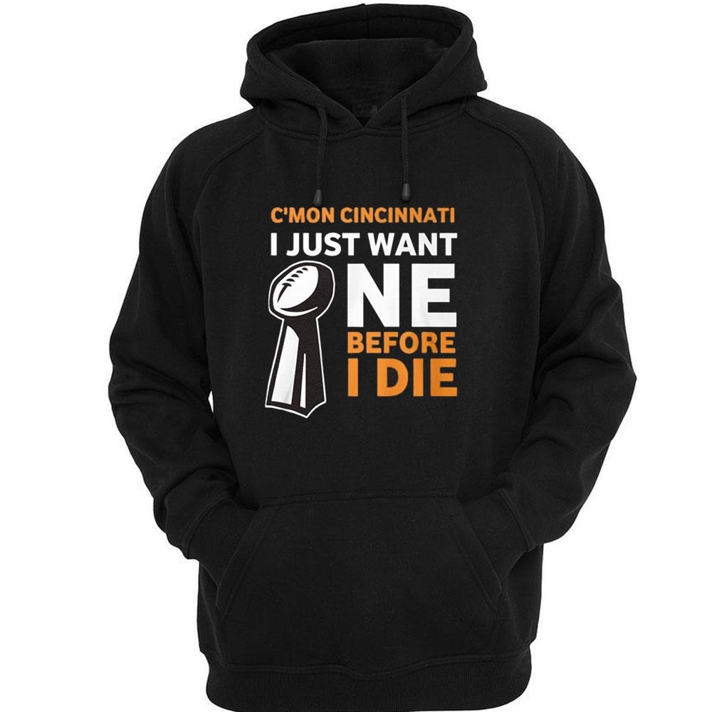 .The “Cmon Cincinati I Just Want One Before I Die” shirt is a must-have for any true Cincinnati sports fan. This bold and unapologetic design captures the unwavering passion and dedication of Cincinnatians who have been waiting decades for their beloved teams to bring home a championship.