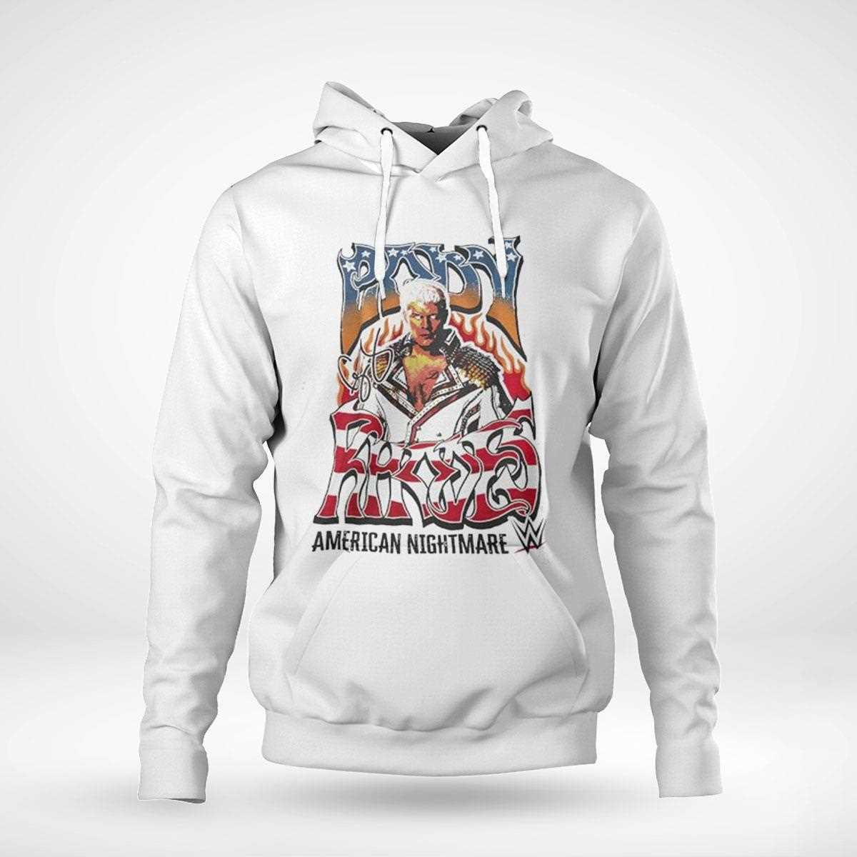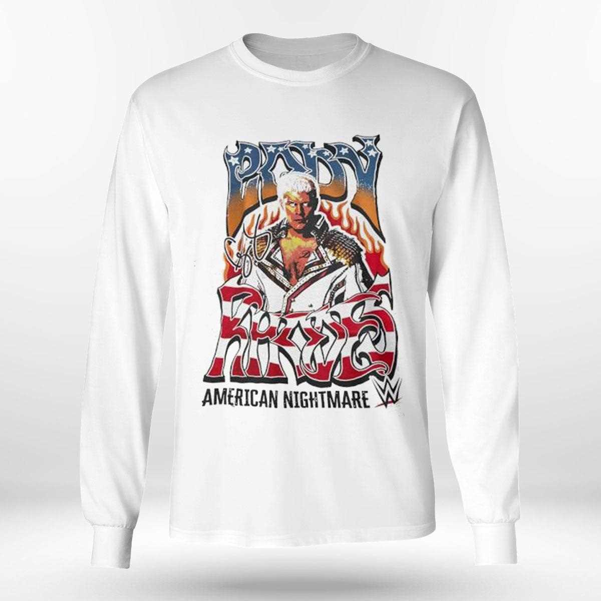 Crafted with high-quality materials, the American Nightmare shirt promises comfort and durability, making it perfect for both wearing during matches or as part of your everyday wardrobe. Its striking design features bold graphics that capture the essence of Cody’s persona—fearless, ambitious, and unapologetically himself.