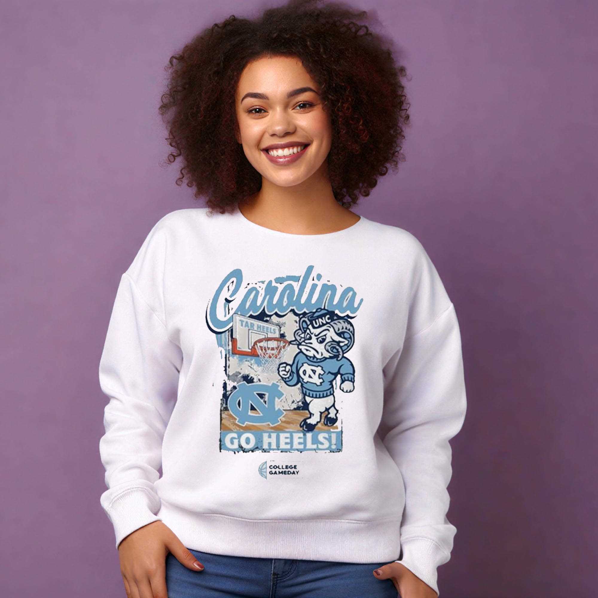 Relive the high-energy magic of Saturday mornings in Chapel Hill with the College Gameday North Carolina Mascot Tee. This design is a nostalgic and vibrant tribute to the Tar Heel spirit, featuring a beautifully rendered vintage caricature of the iconic Rameses mascot. The artwork captures the playful intensity of North Carolina athletics, using the legendary Carolina Blue and white palette to create a look that feels both historic and fresh. Framed by “College Gameday” and “Go Heels!” branding, this shirt is a masterclass in varsity aesthetic, perfect for alumni, students, and lifelong supporters of the ACC powerhouse. It is crafted from ultra-soft, breathable cotton, providing the ultimate comfort for those sunny Saturdays at the stadium or a casual afternoon on the quad. The print uses eco-friendly, soft-touch inks that sink into the fabric for a luxurious feel that won’t irritate the skin. This piece is a must-have for any collector of high-quality university merch, offering a refined alternative to standard jerseys. The fit is tailored and flattering, ensuring you look your best while cheering for every three-pointer and touchdown. Represent the pride of the Old North State with a design that honors the heritage and the spirit of the team. Join the sea of blue and showcase your loyalty to the blue and gold. Score a win for your wardrobe and purchase the College Gameday North Carolina Mascot Tee today!. T-shirt !