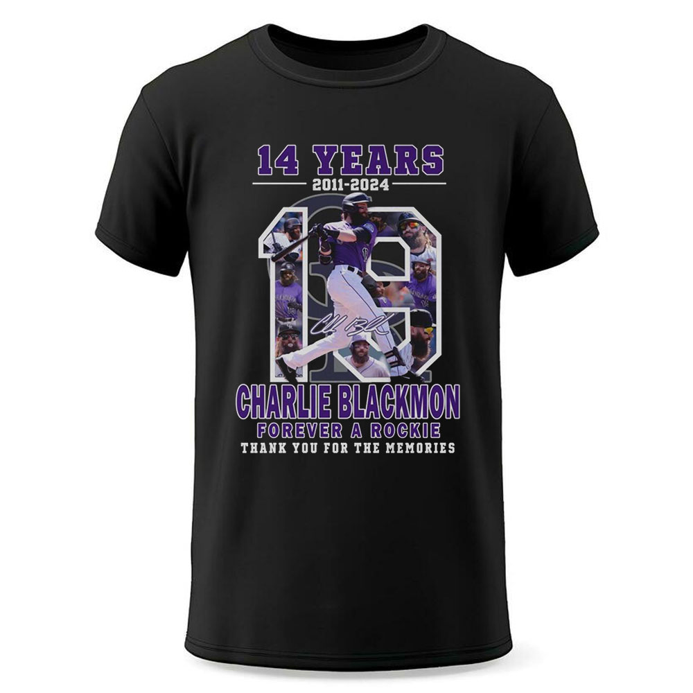 By sporting this shirt, you’re not just celebrating 14 years of remarkable plays and unforgettable moments; you’re also joining a community of Rockies fans who appreciate hard work and resilience. Show your support and pride in being part of something bigger—let’s honor Charlie Blackmon’s legacy together!.