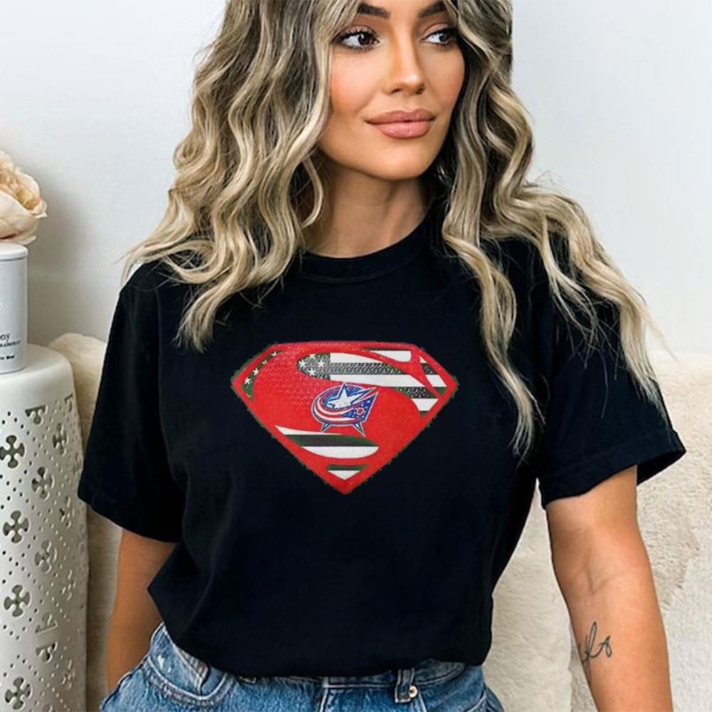 With its comfortable fit and striking design, this ladies tee is sure to become a favorite piece in any Blue Jackets fan’s collection. Stand out from the crowd and showcase your pride with the Columbus Blue Jackets Superman USA Flag Inside shirt!.
