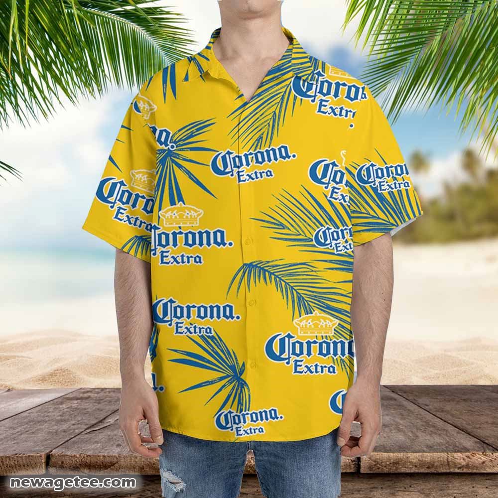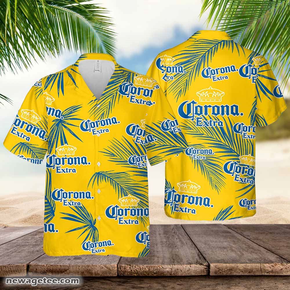 Corona Hawaiian Button Up Shirt Palm Leaves Pattern Party