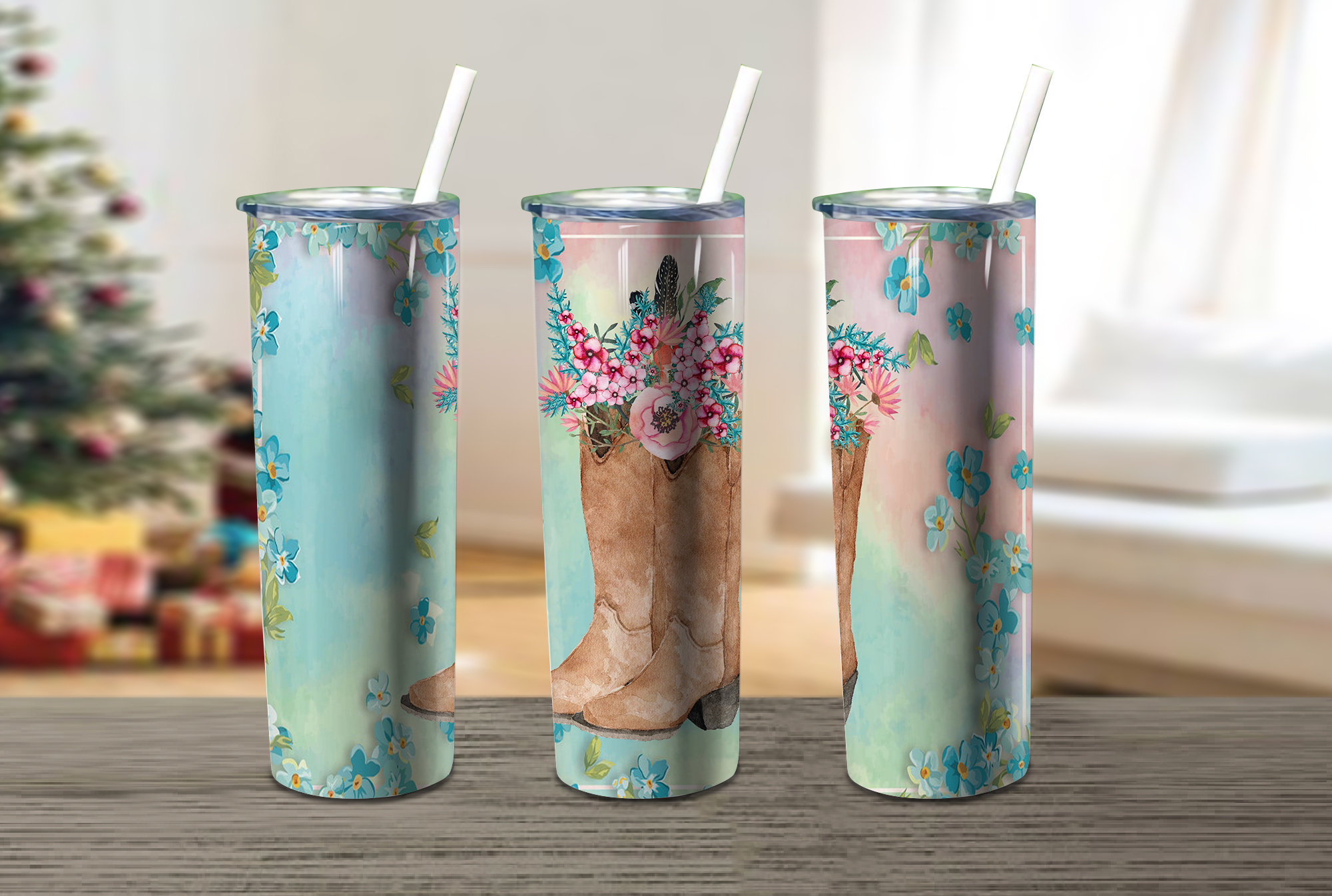 Cowgirl Boots Cowgirl Floral Country Skinny Tumbler