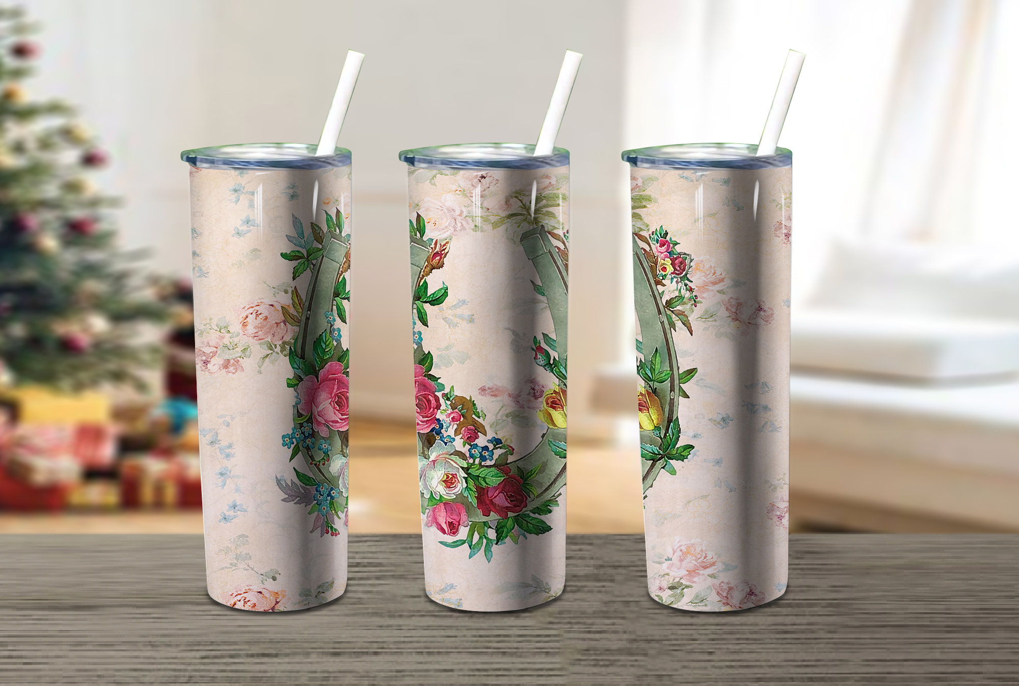 Cowgirl Horseshoe Horse Floral Skinny Tumbler