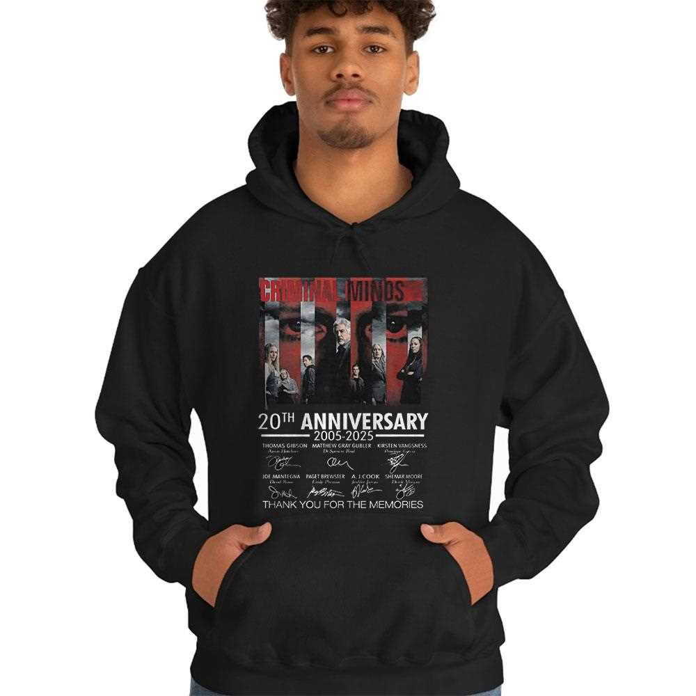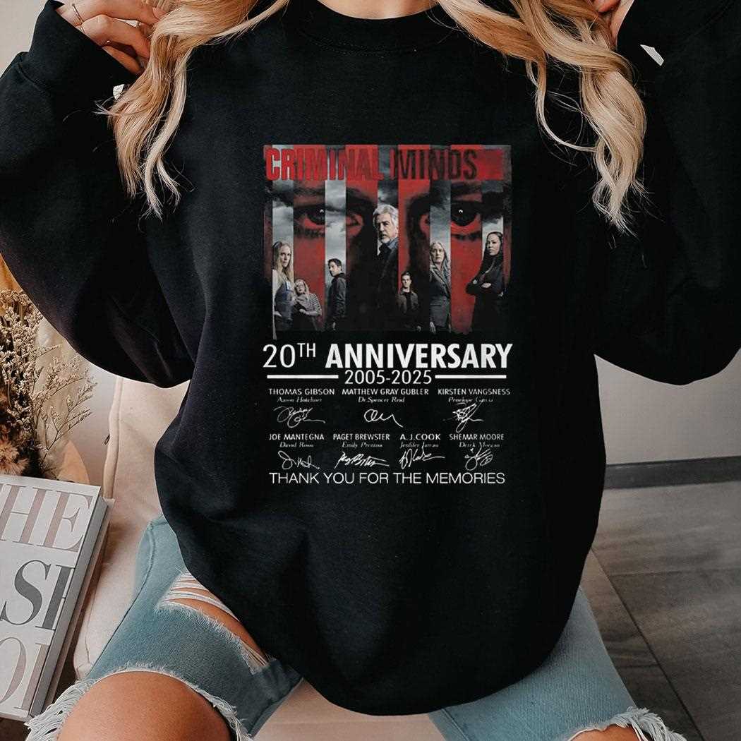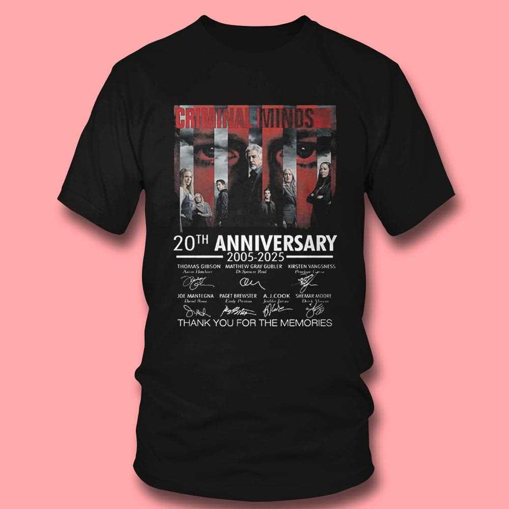 ..As we celebrate the 20th anniversary of “Criminal Minds,” there’s no better way to honor this iconic series than with the exclusive “Thank You For The Memories” shirt. This limited-edition apparel is not just a piece of clothing; it’s a tribute to two decades of thrilling storytelling, unforgettable characters, and gripping suspense that has captivated audiences since its debut in 2005.