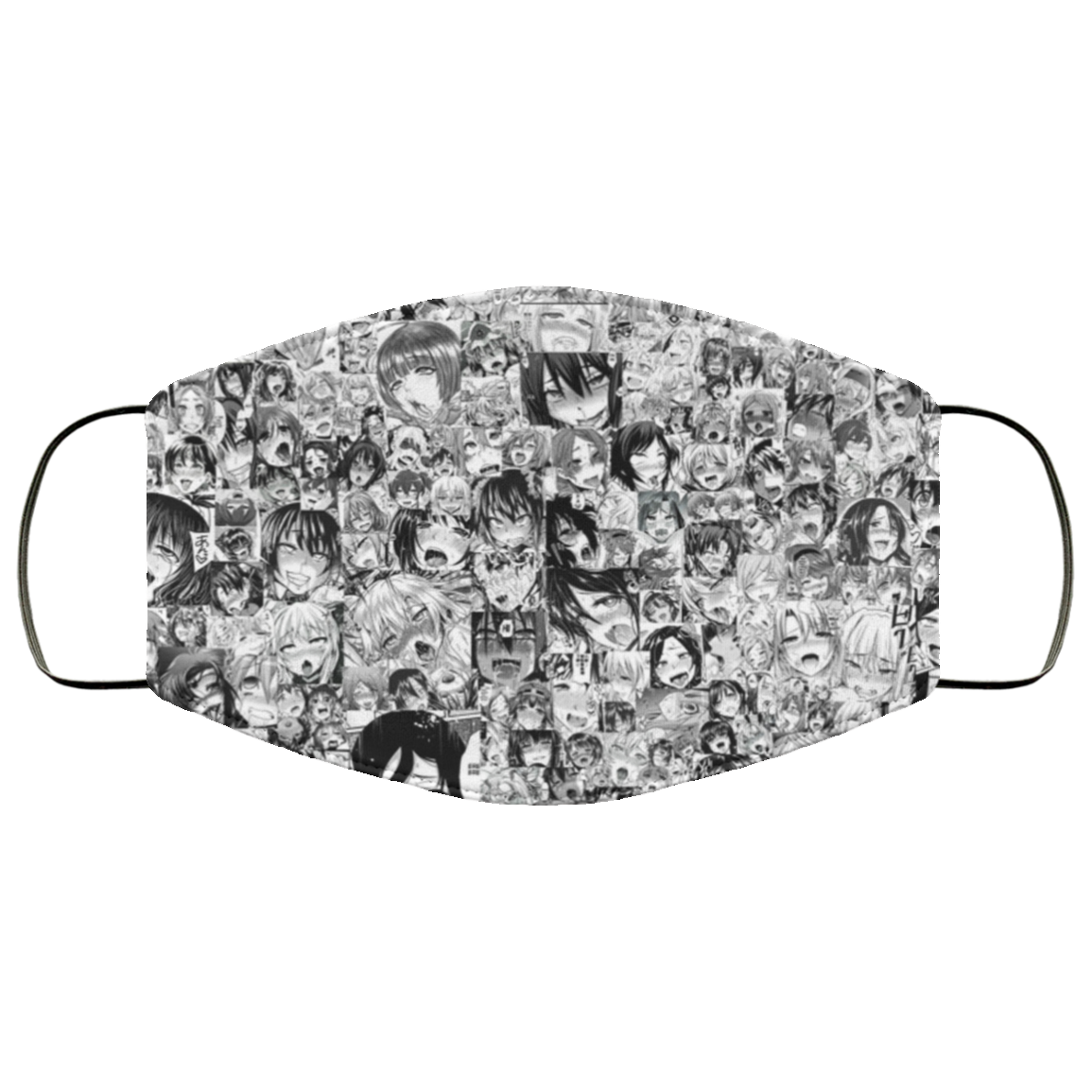 - Comfy two layer protective face mask with black soft stretch ear straps.