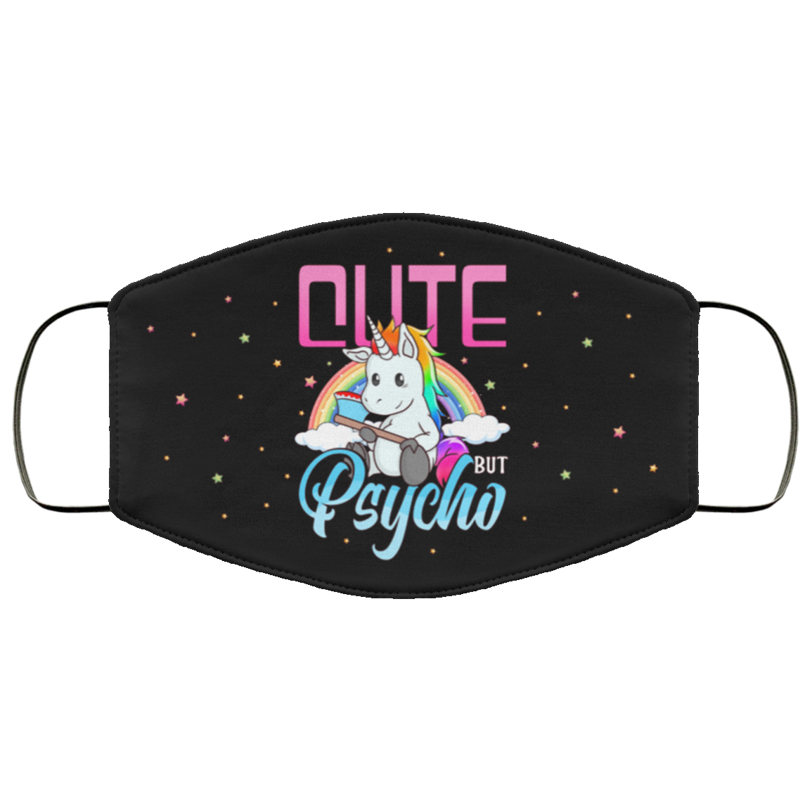 Cute But Psycho Funny Unicorn Face Mask Unicorn Lover Face Mask