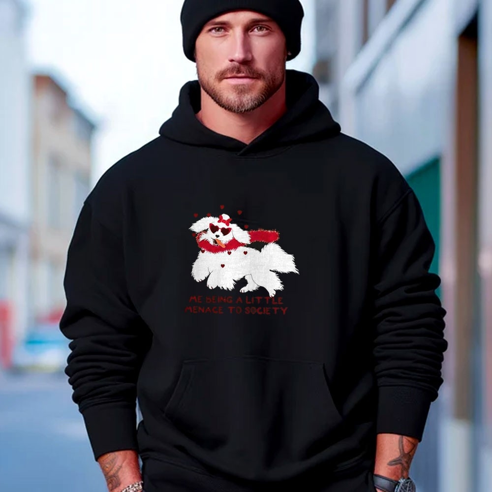 Unleash your playful side with the “Cute Dog Valentine Me Being A Little Menace To Society Tee.” This design features an adorable, fluffy dog with a mischievous glint in its eyes, paired with a funny caption that perfectly captures the “menace” energy we all feel sometimes. The vibrant red and white graphics create a high-impact look that is perfect for Valentine’s Day or any day you’re feeling a little rebellious. Printed on a soft-wash black cotton tee, it offers exceptional comfort and a stylish, relaxed fit. The high-quality digital print captures every strand of fur and the funny expression of the pup in vivid detail. This shirt is a great conversation starter and a fantastic gift for dog lovers with a sense of humor. The fabric is breathable and durable, designed for long-term wear and lots of laughs. Embrace your inner mischief-maker—order your Cute Dog Valentine Me Being A Little Menace To Society Tee today and show your cute side!.