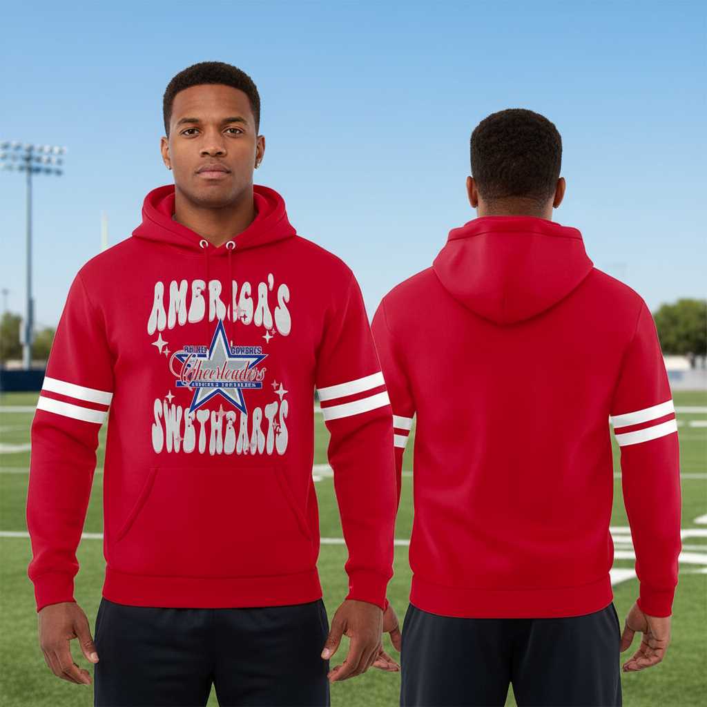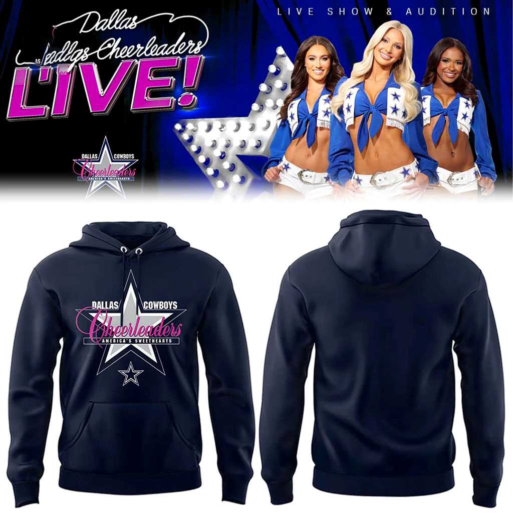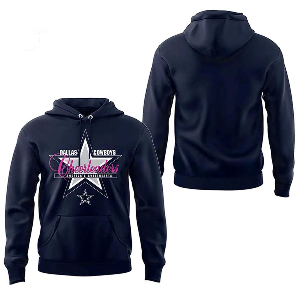 Embrace the spirit of the world’s most famous dance team with the Dallas Cowboys Cheerleaders Hoodie, a premium piece of fan apparel designed for comfort and style. This deep navy blue hoodie serves as the perfect canvas for the iconic pink and white “Dallas Cowboys Cheerleaders” script featured prominently on the back. The front is accented with a subtle yet recognizable logo, making it a versatile choice for both game days at AT&T Stadium and casual outings in the city.The design focuses on a feminine yet sporty aesthetic, utilizing a soft-touch cotton blend that provides warmth without feeling heavy. The adjustable drawstring hood and spacious front pocket offer practical functionality for cooler weather. Every stitch is reinforced to ensure longevity, maintaining its shape and vibrant colors through countless washes. This hoodie isn’t just clothing; it’s a tribute to the legendary blue and silver tradition.Whether you are a lifelong fan or simply love the iconic DCC aesthetic, this garment is a must-have addition to your wardrobe. Its sleek silhouette pairs effortlessly with leggings or denim, allowing you to showcase your Texas pride with elegance and ease.Show your support for the squad today—click here to purchase your very own Dallas Cowboys Cheerleaders Hoodie and join the tradition!
