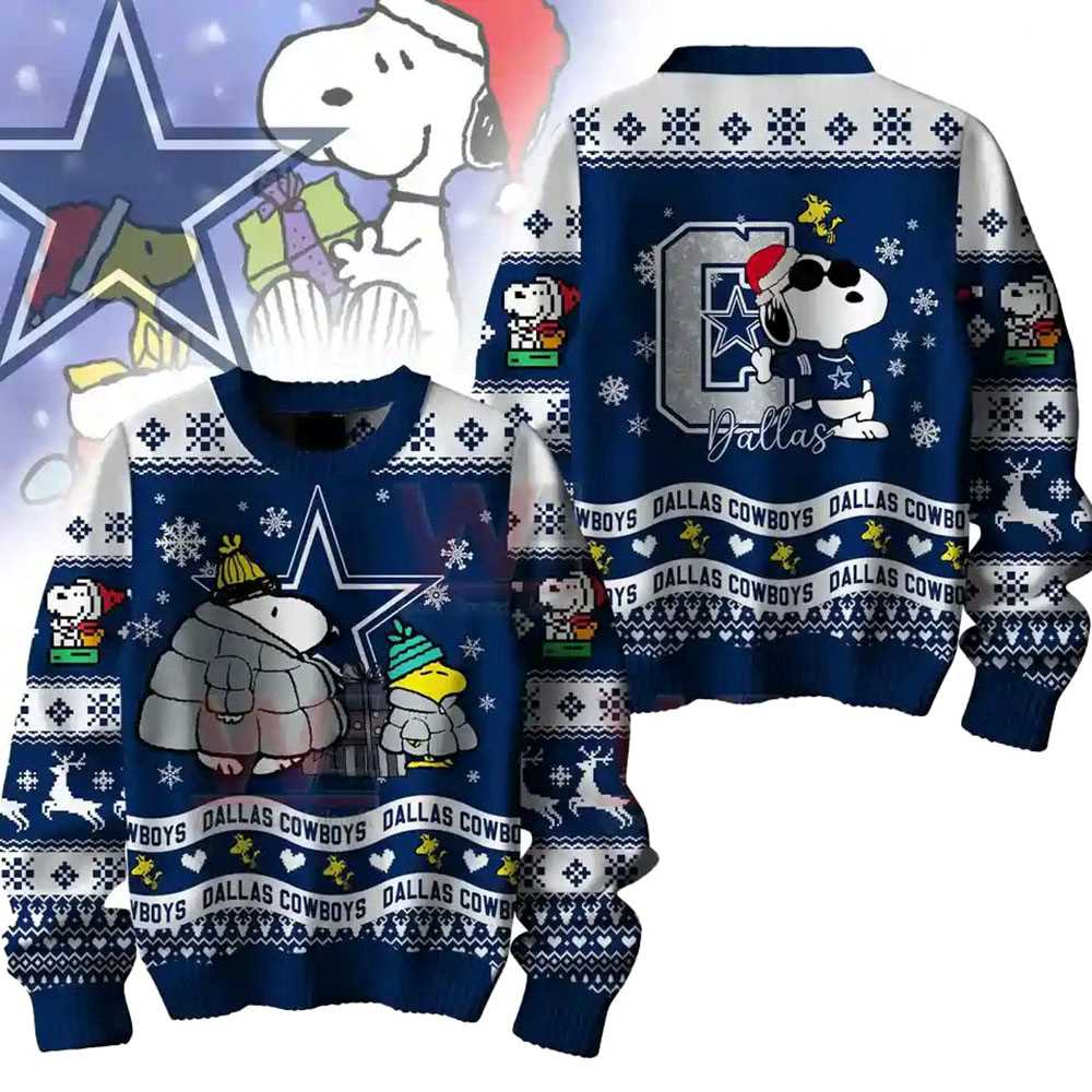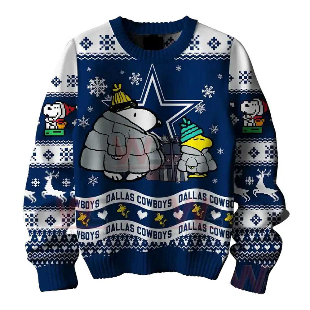 Lead the league in holiday spirit. Get the Dallas Cowboys Snoopy Woodstock Puffer Jacket Ugly Christmas Sweater_3 today and wear the Star with pride.. The Dallas Cowboys Snoopy Woodstock Puffer Jacket Ugly Christmas Sweater are made from a high quality wool fabric that allows the sweater to breath and regulate your body’s temperature. This active fibre is designed to react to your body’s temperature, keeping you warm in the winter and cool in the summer.