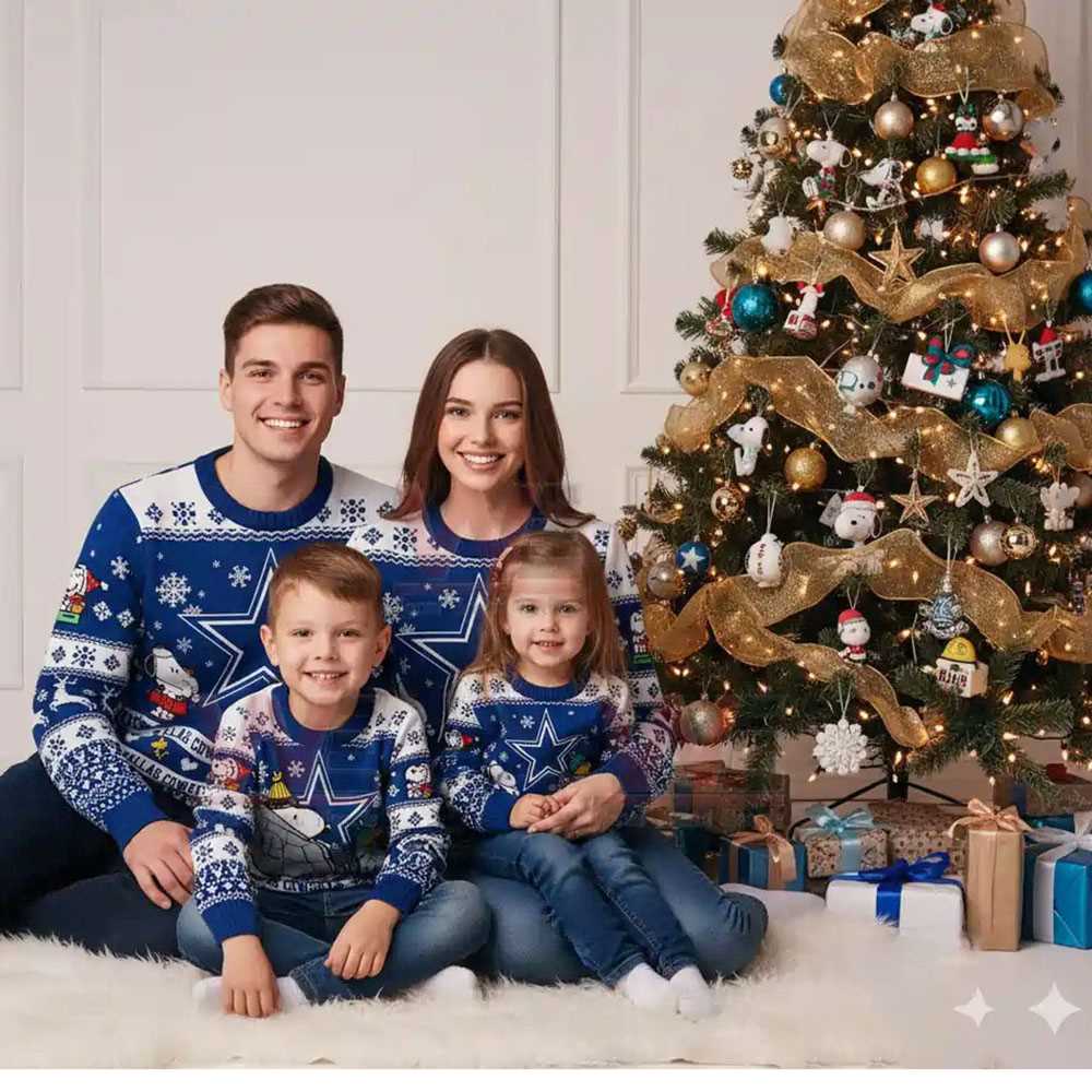 The crisp white snowflakes pop against the navy background, creating a winter wonderland effect that is both sporty and sophisticated. This isn’t just “ugly” sweater wear; it is a fashion statement for the Cowboys Nation. Whether you are celebrating a touchdown or opening gifts, this design keeps you connected to the silver and blue legacy. It is the ideal gift for yourself or the Cowboys fanatic in your life who has everything.