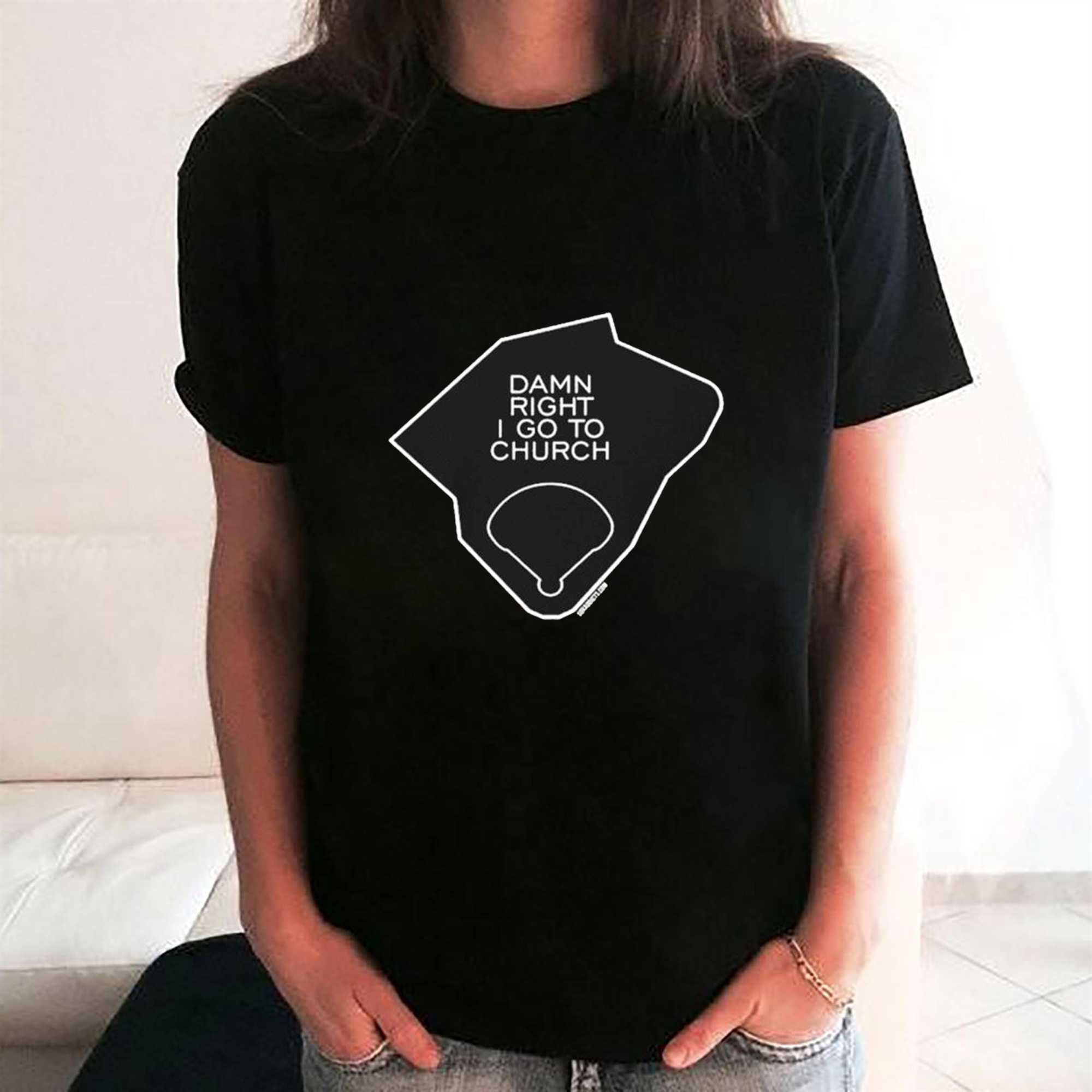 Make a humorous and slightly rebellious statement with the Damn Right I Go To Church Shirt. This design features a clever piece of satirical wordplay, using a sharp, typographic layout to deliver a punchline that will have everyone doing a double-take. The graphic combines a stylized shield logo with the bold “DAMN RIGHT I GO TO CHURCH” slogan, but with a humorous sub-theme that reflects a specific, slightly more “earthy” hobby or community. It’s a brilliant way to break the ice and share your personality in a lighthearted, approachable way. The high-contrast white and red graphics pop vividly against the black tee, ensuring your message is clear from a distance. This shirt is for the people who don’t take themselves too seriously and love a good conversation-starting graphic. Crafted from a soft, premium cotton-poly blend, it offers a comfortable, relaxed fit for all-day wear. It’s an ideal choice for social gatherings, weekend events, or just daily wear as a reminder to laugh at life. The design is clever, artistic, and undeniably fun, making it a great gift for friends and family with a sharp sense of humor. Show the world that you have a unique perspective and an appreciation for a good joke. Add a touch of wit to your casual wardrobe. Order your Damn Right I Go To Church Shirt today and let the fun begin!.