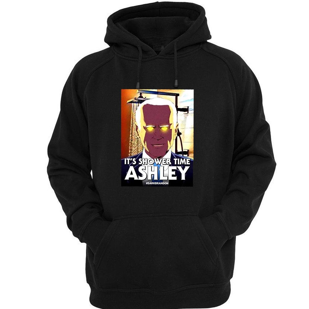 The “Dark Brandon Joe Biden Its Shower Time Ashley Graphic Shirt” takes this meme to the next level, featuring a striking image of Biden with a steely gaze and the text “Its Shower Time Ashley.” The shirt is a clear reference to a recent incident where Biden was overheard telling a reporter to “go take a shower” during a press conference.