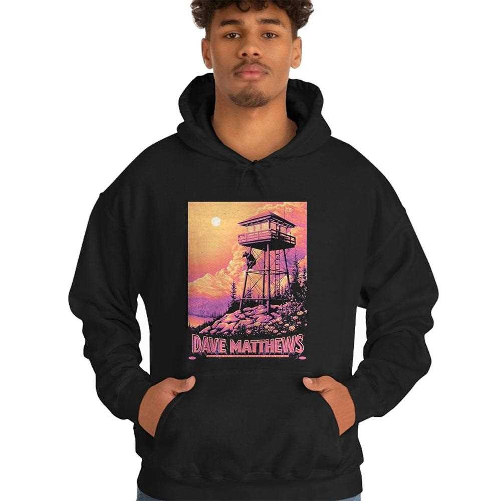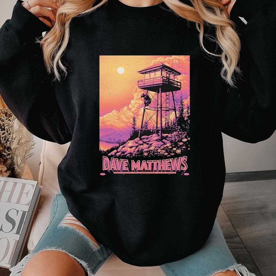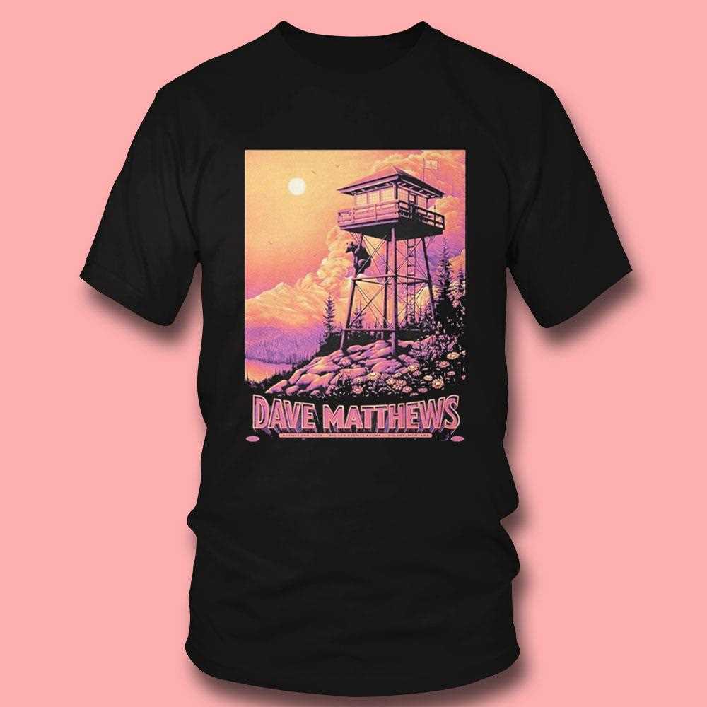 Commemorate a magical night under the big sky. This beautiful t-shirt is designed as a souvenir poster for a (future) Dave Matthews Band concert in Montana. The artwork is stunning, featuring a serene, sunset-drenched landscape with a fire lookout tower, perfectly capturing the wide-open, soulful vibe of both the location and the band’s music. The soft, warm color palette and the detailed illustration make this a true piece of wearable art, a perfect way to remember a special night of music and community in one of the most beautiful places on earth.