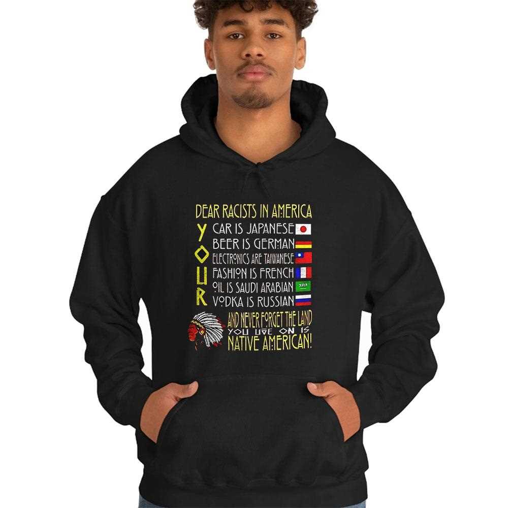 Make a brilliant and powerful statement without saying a word. This incredibly clever t-shirt uses an acrostic of car logos and national flags to deconstruct racist ideas, promoting a message of diversity and acknowledging the true, multicultural fabric of America. It’s intelligence and activism woven into one design. Ready to wear your values? This thought-provoking and stylish shirt is the perfect way to stand for unity and spark meaningful conversations. Join the movement and get yours today..