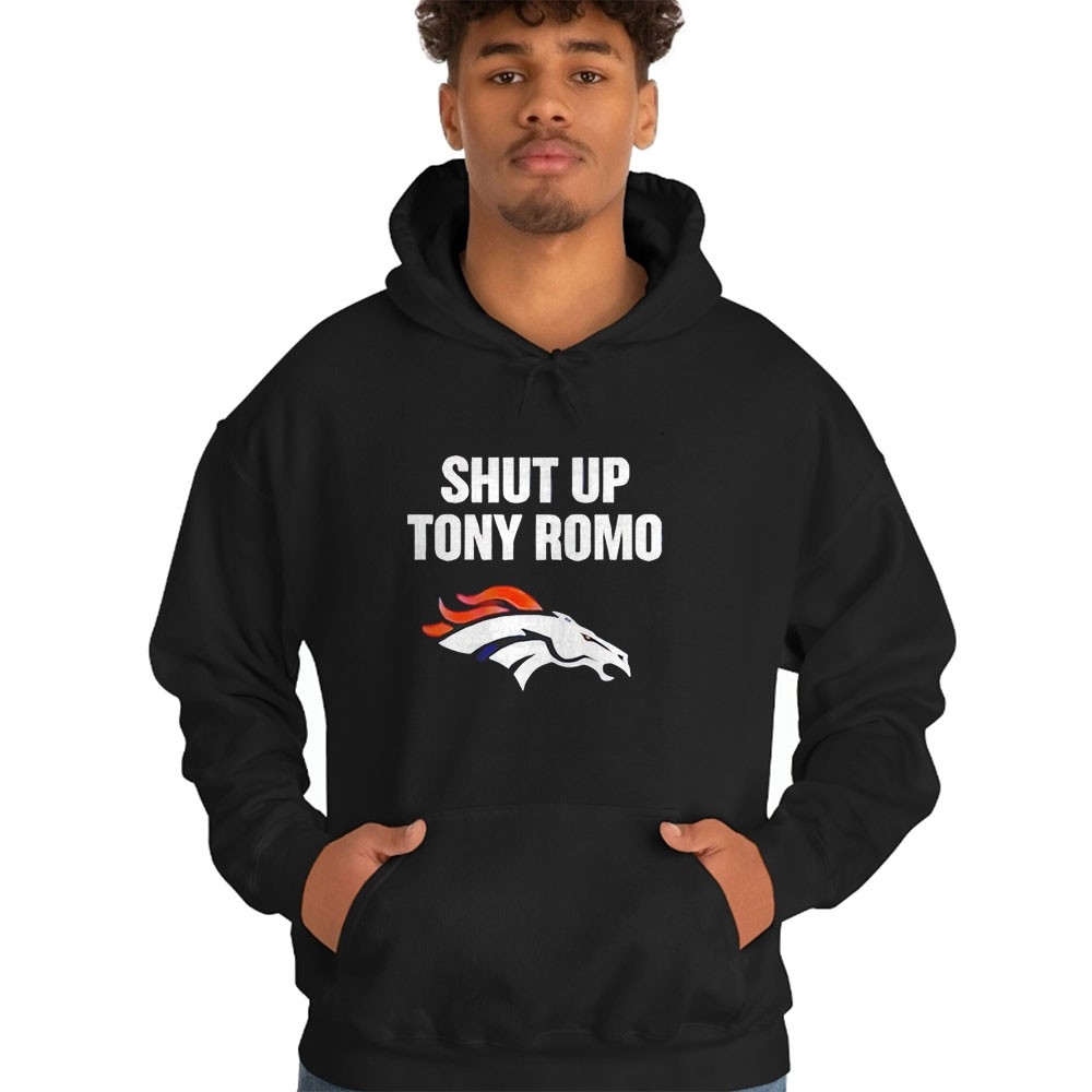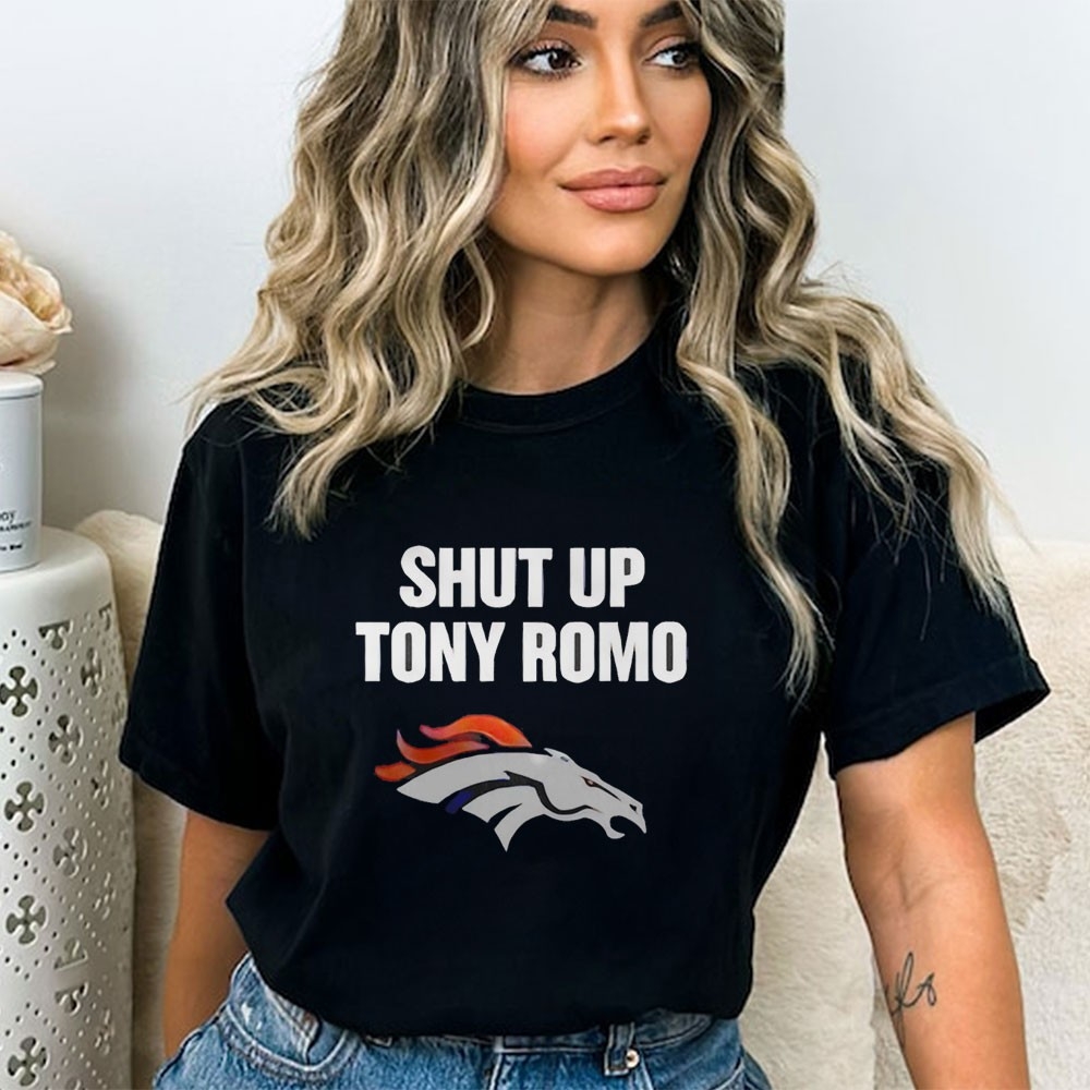 Express the collective sentiment of the “United in Orange” faithful with this hilariously direct fan tee. This design is for the Denver Broncos supporter who has heard enough from the broadcast booth and just wants to focus on the game-winning drive. The graphic features a bold, high-contrast headline that cuts through the noise, accompanied by the iconic Broncos logo and colors. The typography is clean and professional, giving it a high-end sports-fan feel while delivering a witty punchline that every fan watching at home or in the stadium can relate to. Made from a premium performance cotton blend, this shirt is designed for comfort during the most stressful fourth quarters and the rowdiest victory celebrations at Mile High. The durable screen print is designed to withstand the excitement and the laundry, maintaining its sharp look season after season. It’s an essential piece for game-day watch parties and a fantastic conversation starter among the Bronco nation. Show everyone that you have your own analysis and you don’t need the “Romo-vision” to see the brilliance on the field. Keep the focus on the field and silence the noise—grab your Denver Broncos Shut Up Tony Romo Tee now and lead the charge!.