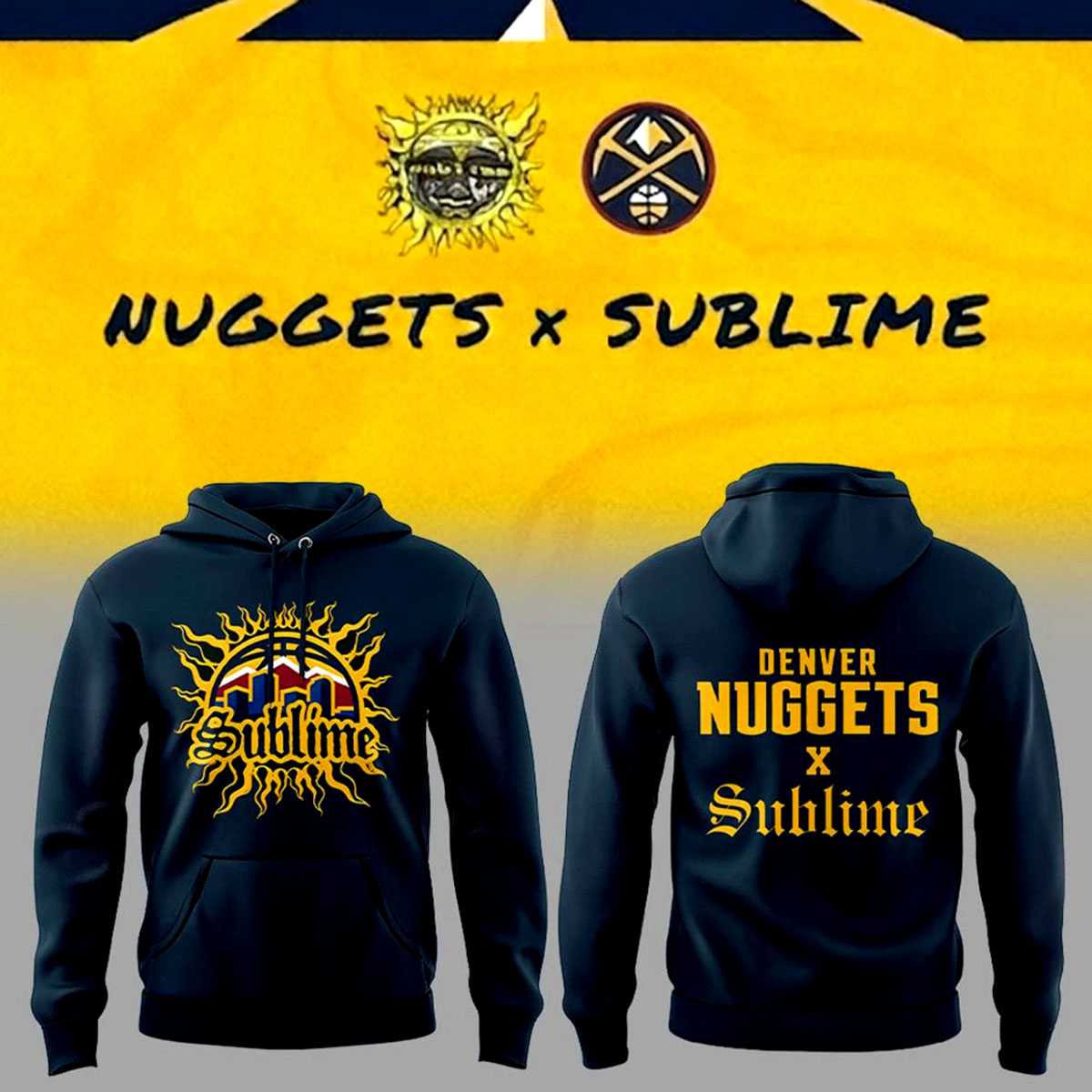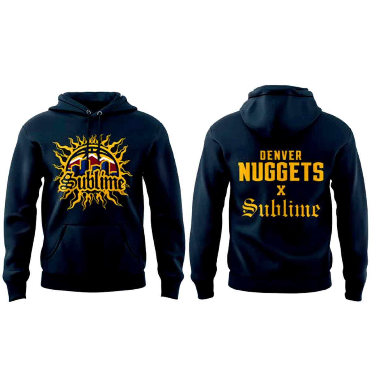 Go deep into the groove with the Denver Nuggets Sublime Hoodie in a sophisticated navy blue. This version of the collaboration offers a more understated and classic look, focusing on the powerful synergy between the Nuggets’ championship legacy and Sublime’s timeless music. The front features a large, gold-toned “Nuggets x Sublime” graphic that pops against the dark fabric.Constructed from premium mid-weight fleece, this hoodie provides the perfect balance of warmth and breathability for everyday wear. The rib-knit cuffs and waistband offer a secure and comfortable fit, while the spacious hood provides extra coverage when needed. It’s an ideal piece for fans who want a stylish, high-quality way to represent their dual passions for basketball and music.The back features a subtle “2026” tour-style branding, making it a functional keepsake of this unique partnership. The high-quality materials and professional finish reflect the championship standards of the Denver Nuggets. It’s a versatile streetwear item that works for game nights, concerts, or just hanging out.Represent the Mile High and the LBC! Order your Denver Nuggets Sublime Hoodie today and elevate your fan gear.
