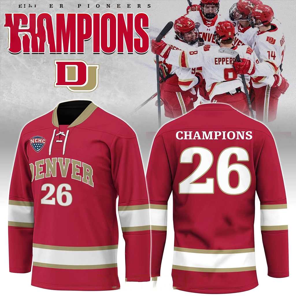 Product Details – Denver Pioneers NCAA National Champions 2026 Custom Hockey Jersey