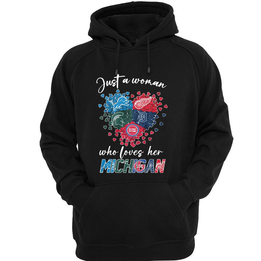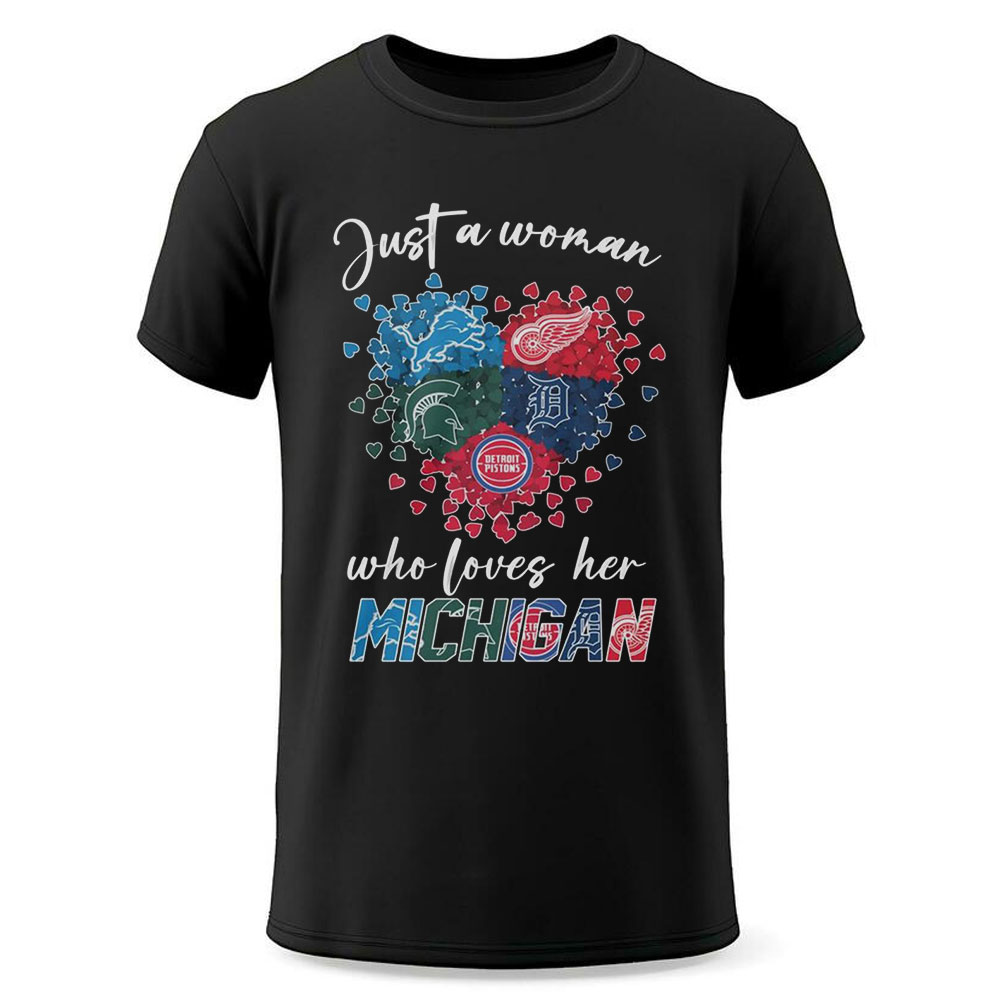 Detroit Lions Red Wings Tigers Michigan Spartans Just A Woman Loves Her Michigan Shirt