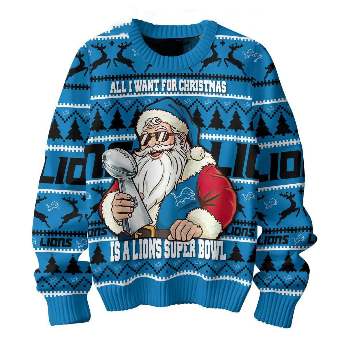 Detroit Lions Santa All I Want For Christmas Is Super Bowl Ugly Sweater