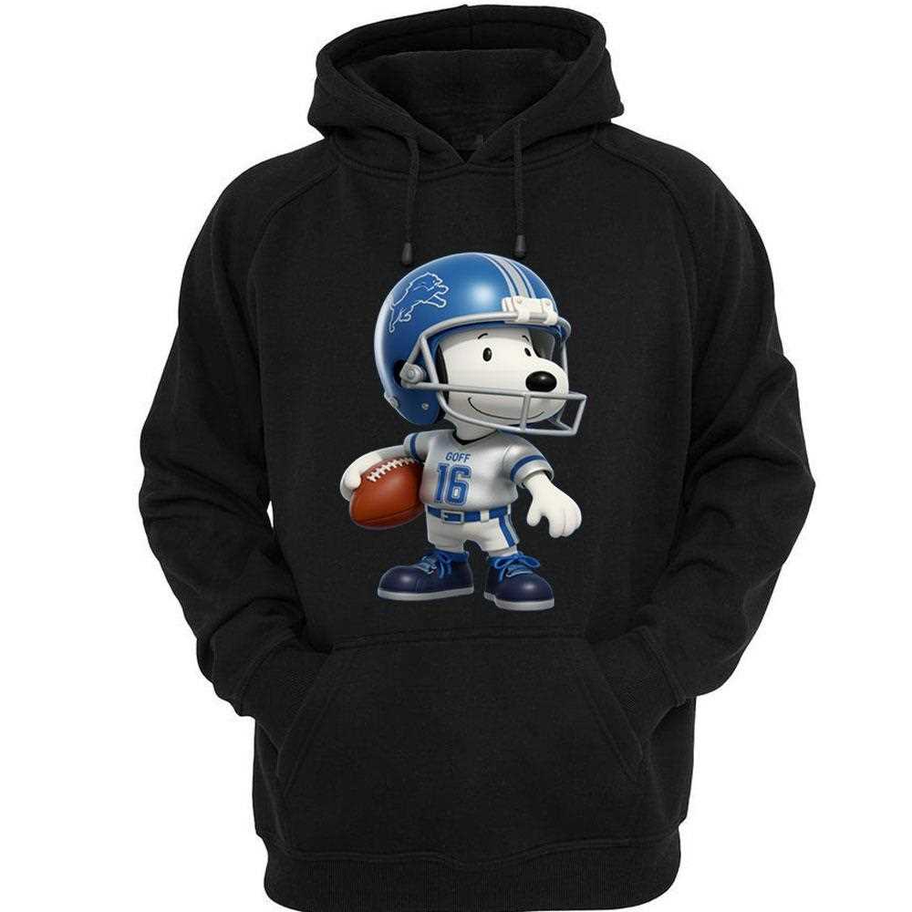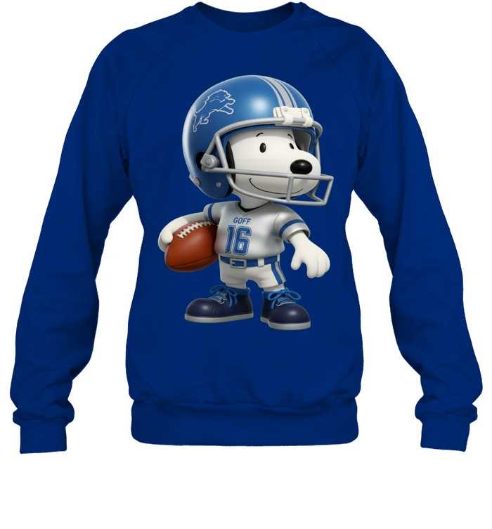 | Detroit Lions Snoopy Football Sweatshirt: Roaring Good Fun! | Show your Lions pride with the adorable Detroit Lions Snoopy Football Sweatshirt! This deep blue crewneck features Snoopy, prepped for the stadium in a silver Lions helmet with the roaring lion logo, and a jersey sporting the number ‘1’. He’s got the football, radiating the team’s determination and fight. The bold blue and silver color scheme instantly connects you to the heart of Detroit football. This sweatshirt is the perfect garment for those who appreciate a playful nod to their favorite team, offering both warmth and a unique fan statement. It’s incredibly soft and a fantastic addition to any fan’s wardrobe. Be part of the pride and joy. Get your Detroit Lions Snoopy Football Sweatshirt and let Snoopy lead the charge! |. T-shirt !