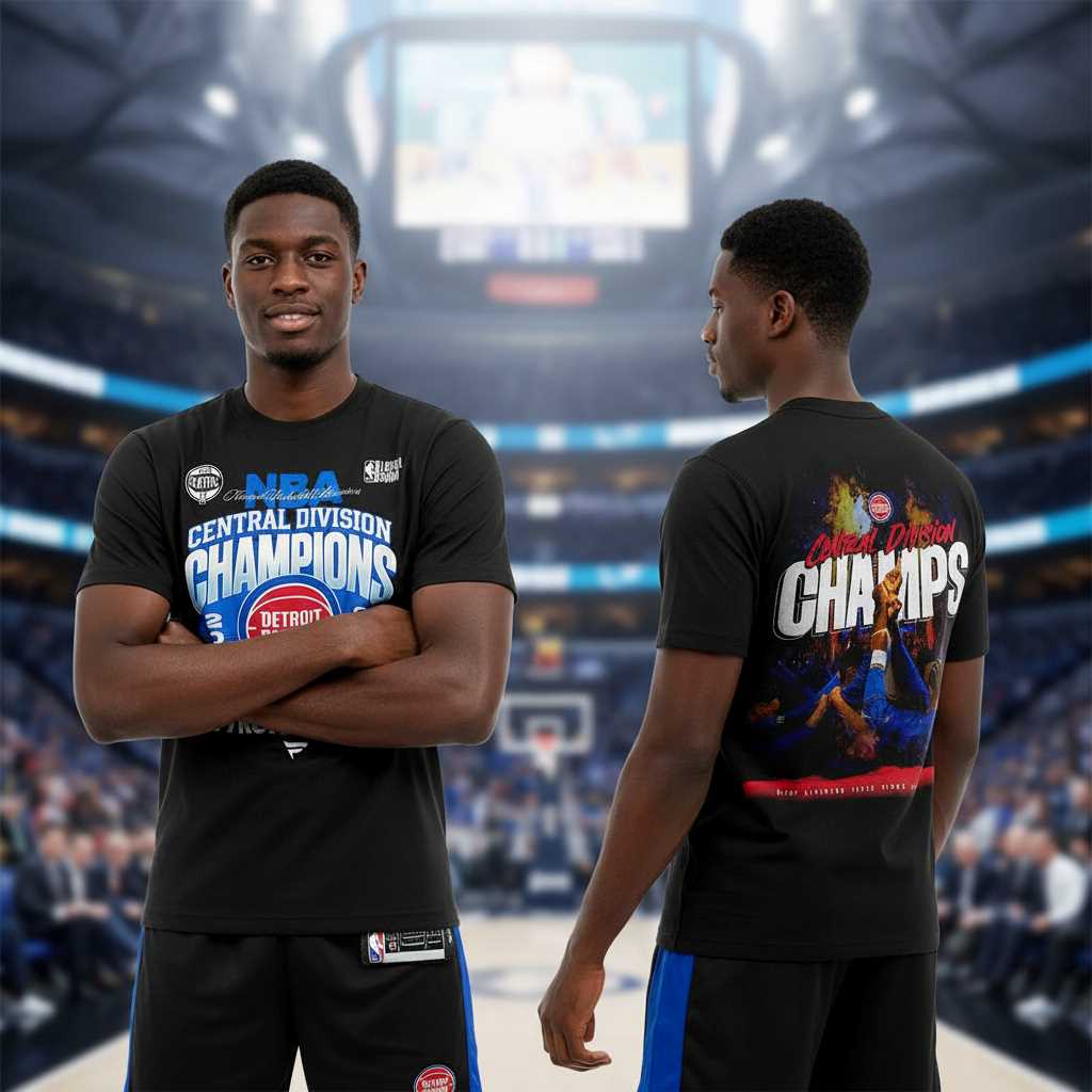 Declare your team’s destiny with the Detroit Pistons the Central Division Champs 2026 Hoodie, a visionary piece of apparel that’s both witty and incredibly stylish. This bold design, prominently featured on a black background, showcases a commanding front graphic. It’s proudly emblazoned with “CENTRAL DIVISION CHAMPIONS” in striking electric blue and white typography, perfectly framing the unmistakable Detroit Pistons logo. The reverse explodes with a triumphant scene: players celebrating in a dynamic, fiery display of oranges and reds, with “Central Division CHAMPS” boldly declared in white. It’s an aspirational, humorous nod to future greatness, confidently predicting the Pistons’ 2026 Central Division title.