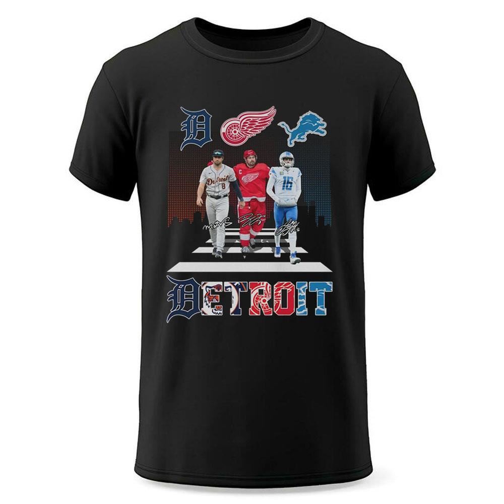 Imagine walking into a game or gathering wearing this shirt, showcasing your support for Matt Vierling’s impressive plays on the diamond, Jared Goff’s leadership on the field, and Dylan Larkin’s skill on the ice. It’s not just clothing; it’s a statement of pride in Detroit’s rich sports culture.