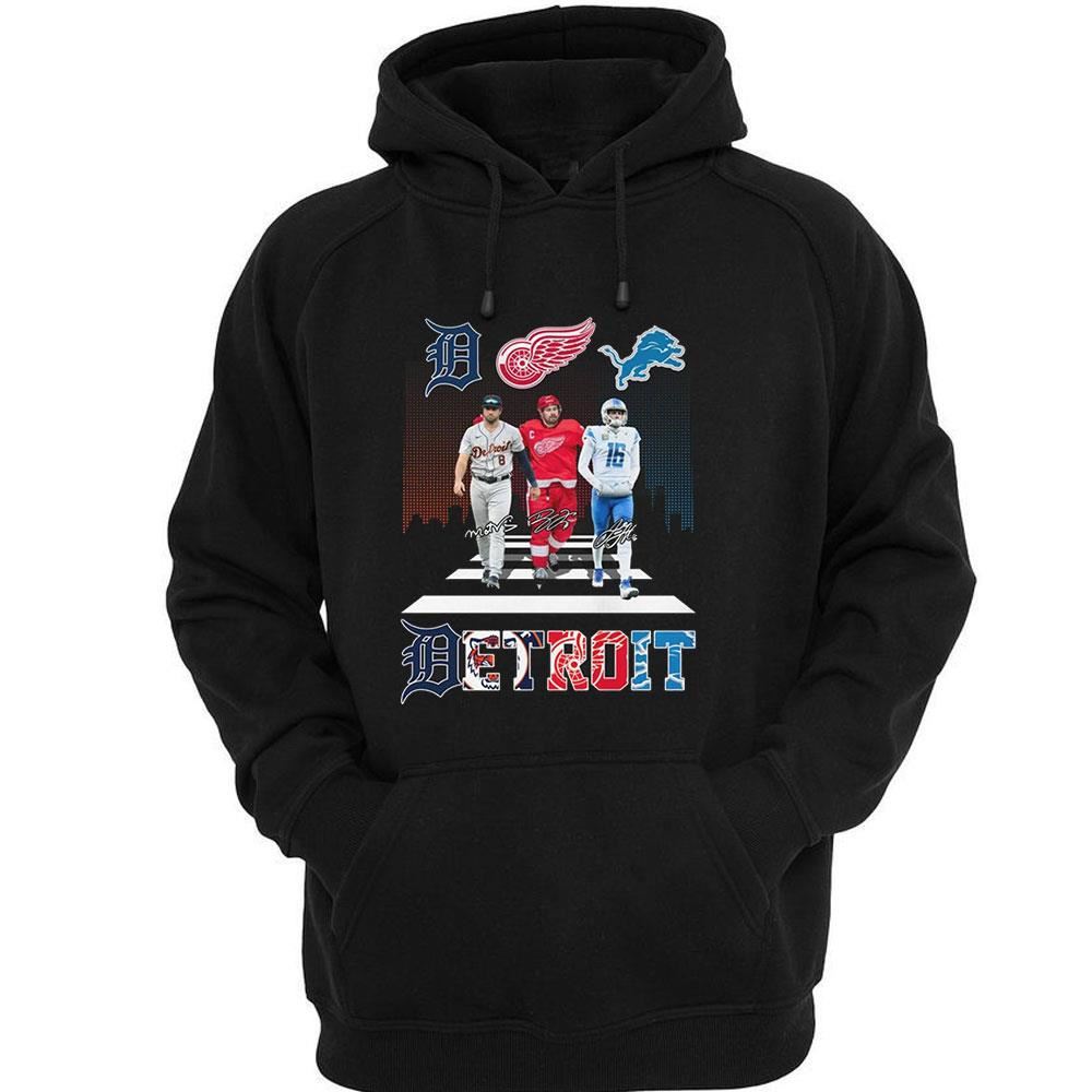 .When it comes to representing your love for Detroit sports, nothing says team spirit quite like the Detroit Tigers Matt Vierling, Detroit Lions Jared Goff, and Red Wings Dylan Larkin shirt. This unique apparel combines the essence of three beloved teams into one stylish piece that every true fan should own.