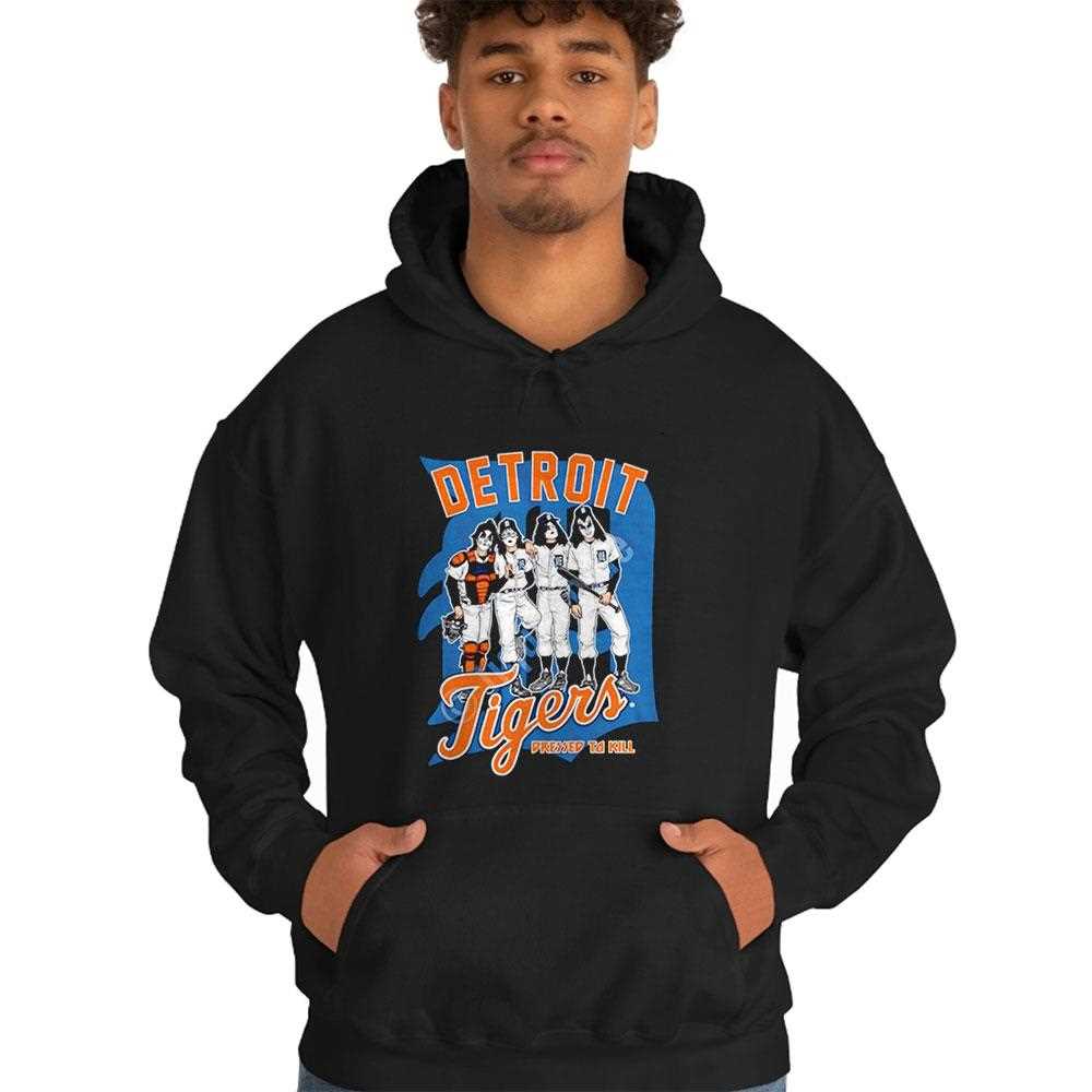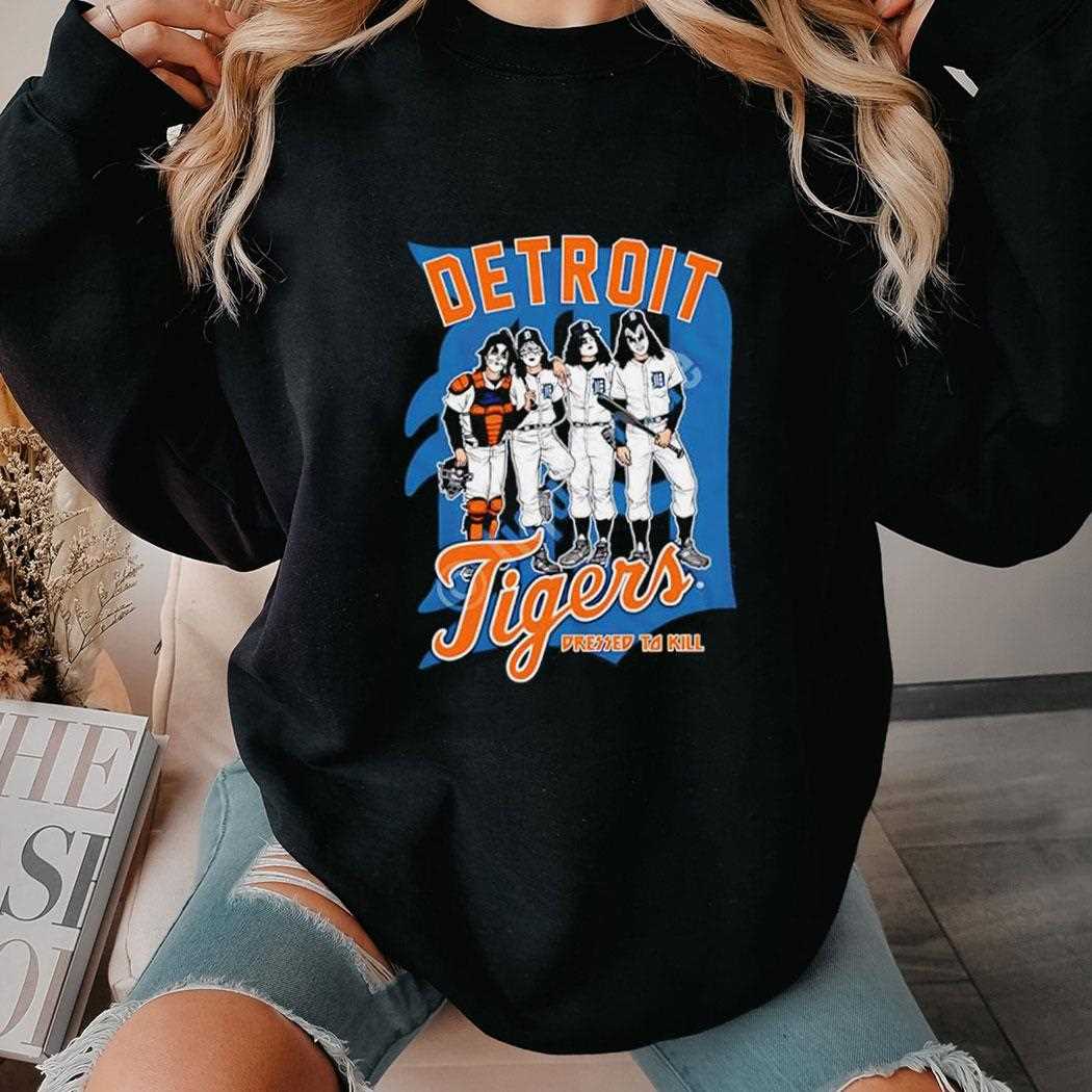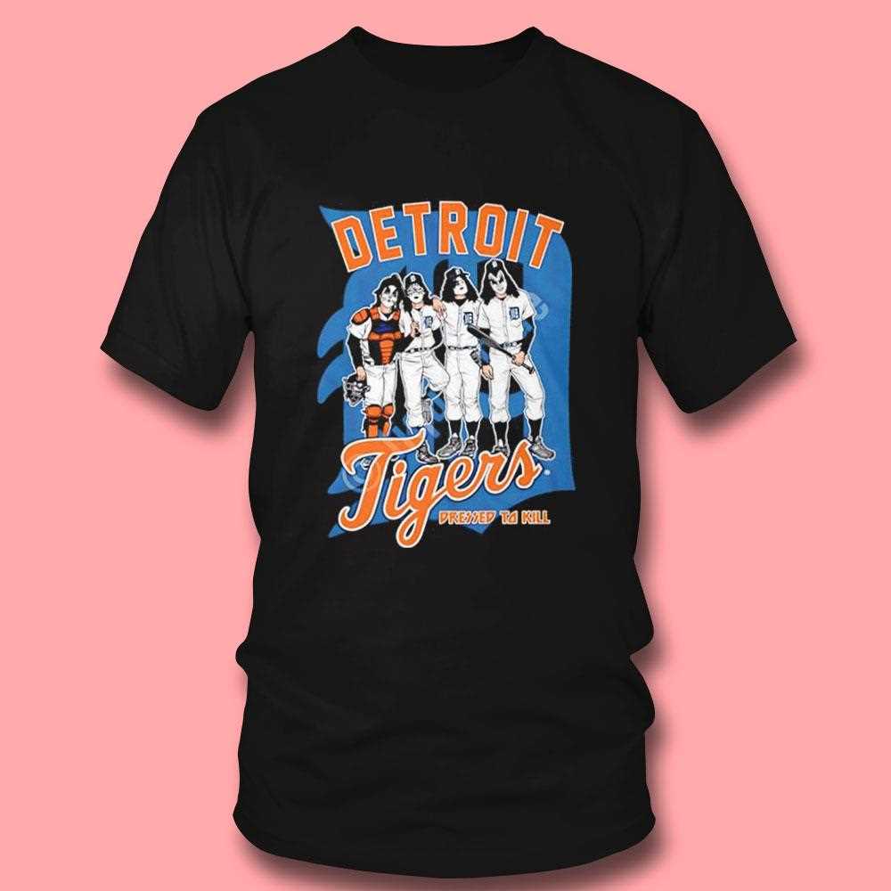 This electric collaboration brings together the grit of Motor City baseball and the theatricality of rock ‘n roll. The Detroit Tigers X Dressed To Kill Tee features a high-octane design inspired by the iconic KISS aesthetic, merging the Tigers’ Old English ‘D’ with the “Dressed to Kill” album art style. The graphics are bold and aggressive, featuring the team logo with lightning bolts and rock-inspired flourishes in a striking orange, navy, and white color scheme. This shirt is for the fan who wants to stand out at Comerica Park with a look that screams energy and rebellion. The print is applied using high-density ink for a textured, premium feel that pops off the black fabric. Made from a durable ringspun cotton, this tee is designed to withstand the excitement of a ninth-inning rally or a late-night concert. It’s the perfect fusion of two Detroit staples: world-class sports and legendary music culture. Rock your Tigers pride like never before—grab the Detroit Tigers X Dressed To Kill Tee today and lead the pack!. T-shirt !