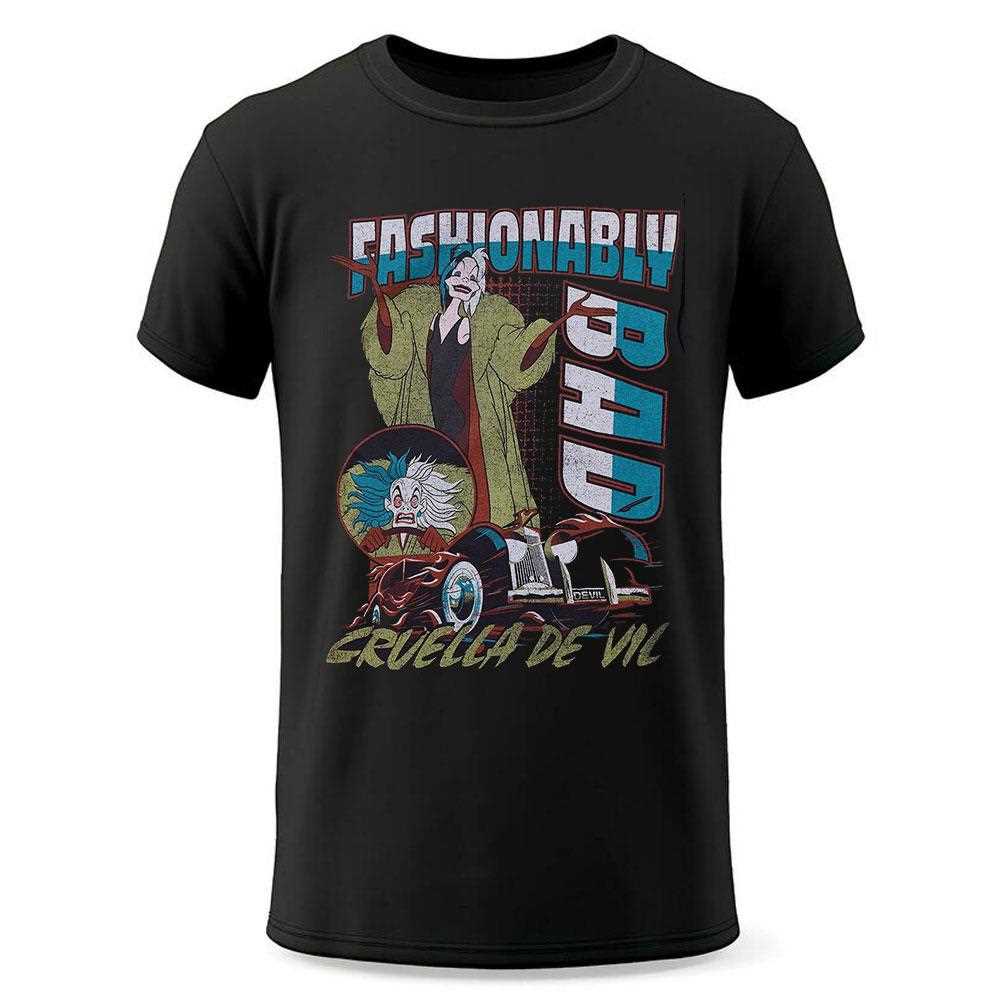 Embrace your wild side with the wickedly chic Disney 101 Dalmatians Cruella Collage T-Shirt. This isn’t just a piece of Disney apparel; it’s a captivating artistic tribute to one of animation’s most iconic villains, Cruella De Vil. The design features a stunning collage, presenting Cruella in various dramatic poses and expressions, showcasing her flamboyant personality and sinister charm against a backdrop of mischievous Dalmatians. The monochromatic palette with pops of red highlights her signature style, making this tee a sophisticated yet playful statement piece. Crafted from soft, breathable cotton, it offers superior comfort for all-day wear, whether you’re planning a grand entrance or simply indulging in some villainous relaxation. The durable, high-quality print ensures that Cruella’s legendary allure remains vibrant and intact, wash after wash. Perfect for fans who appreciate Disney with a touch of daring. Make a bold fashion statement and command attention with the fabulous Disney 101 Dalmatians Cruella Collage T-Shirt – a must-have for every fashion-forward rebel!. T-shirt !