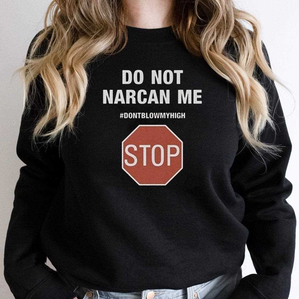 A bold and provocative statement. This t-shirt features a stop sign and the direct message, “DO NOT NARCAN ME,” with the hashtag #DONTBLOWMYHIGH. It’s a dark and edgy piece of humor for those with a specific point of view. For the person who isn’t afraid to make a controversial statement. This is a powerful and direct way to express your views..