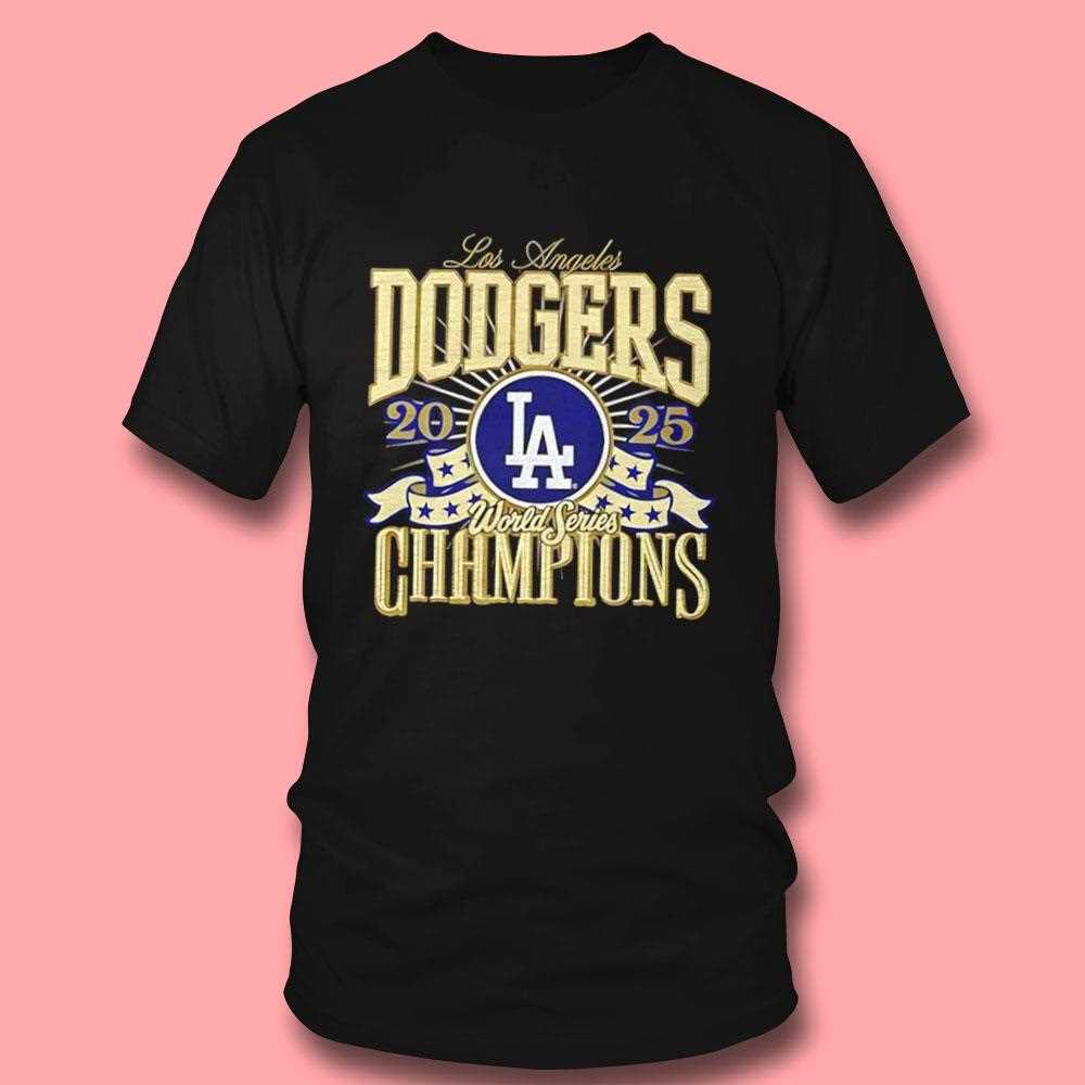 Celebrate a future legacy with this stunning tribute to Los Angeles baseball excellence. The design features a majestic championship banner draped elegantly across the chest, shimmering with gold-tone accents that signify ultimate victory. At the heart of the graphic is the iconic interlocking “LA” logo, crowned with the “2025 World Series Champions” title in a bold, authoritative typeface. The artwork utilizes a high-contrast color palette of royal blue and metallic gold, making the victory message pop against the premium black fabric. Every detail, from the intricate stitching patterns on the rendered banner to the subtle glow effects around the trophy silhouette, is captured with high-definition printing technology. This shirt isn’t just apparel; it’s a piece of history for the true fan who believes in the blue. Whether you’re at Chavez Ravine or hitting the streets of LA, this tee ensures your loyalty is visible from a mile away. The soft, breathable cotton blend provides all-day comfort, making it perfect for victory parades or casual hangouts. Don’t wait for the final out to claim your glory—secure your Dodgers 2025 Champions World Series Banner Tee today and wear the crown of a champion!. T-shirt !