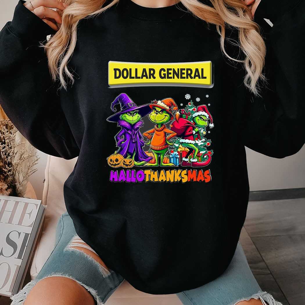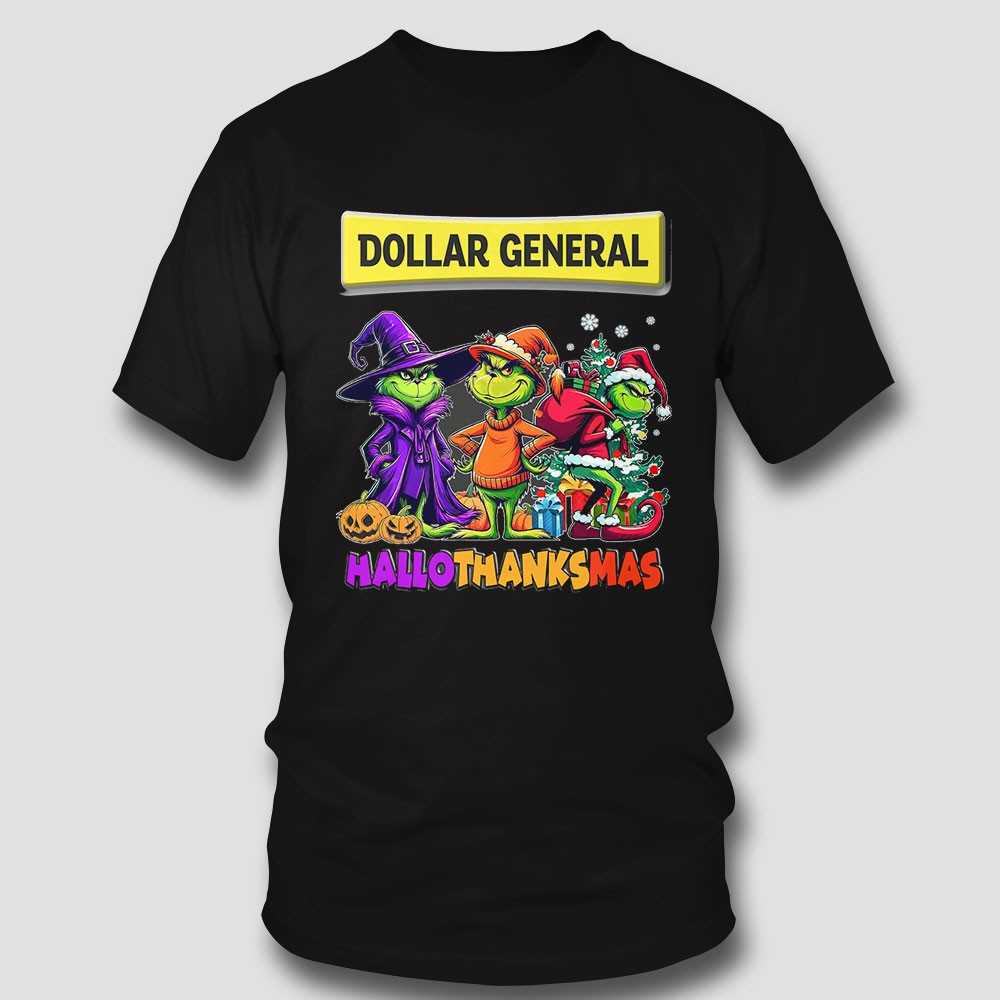 🎁 Unleash Your Inner Grinch! Grab your Dollar General Grinch Hallowthanksmas T-Shirt and enjoy a triple dose of holiday fun!. T-shirt !