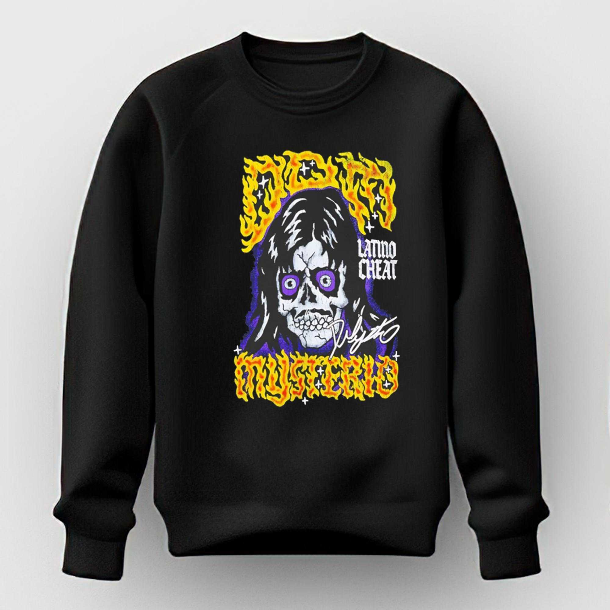Step into the atmospheric and gritty world of modern wrestling drama with the Dominik Mysterio Tattoo Skull Tee. This design is a sophisticated and powerful tribute to “Dirty Dom,” featuring a stunning, high-contrast illustration of a stylized skull adorned with tattoos that mirror the character’s signature look. The artwork captures the edge, the talent, and the uncompromising energy of the Judgment Day star, utilizing a warm palette of golds and deep blacks that reflect the high-stakes energy of the squared circle. It’s an absolute must-have for fans of modern heels and elite character design.
