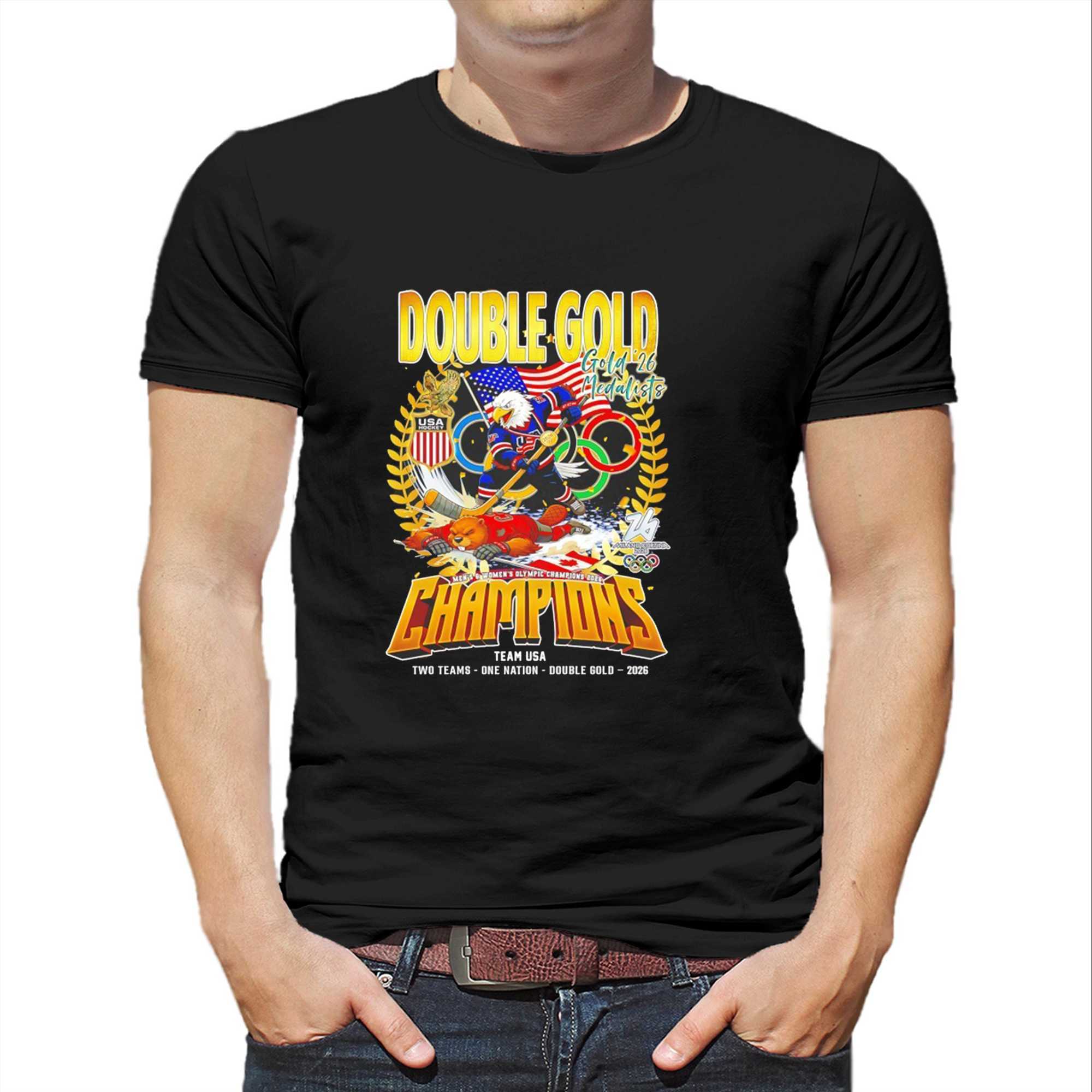 Double Gold 2026 Medalists Champions Team Usa Two Team One Nation Tee