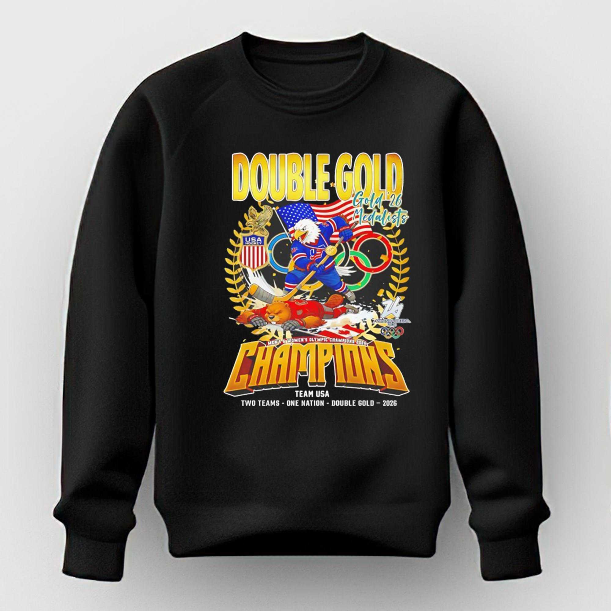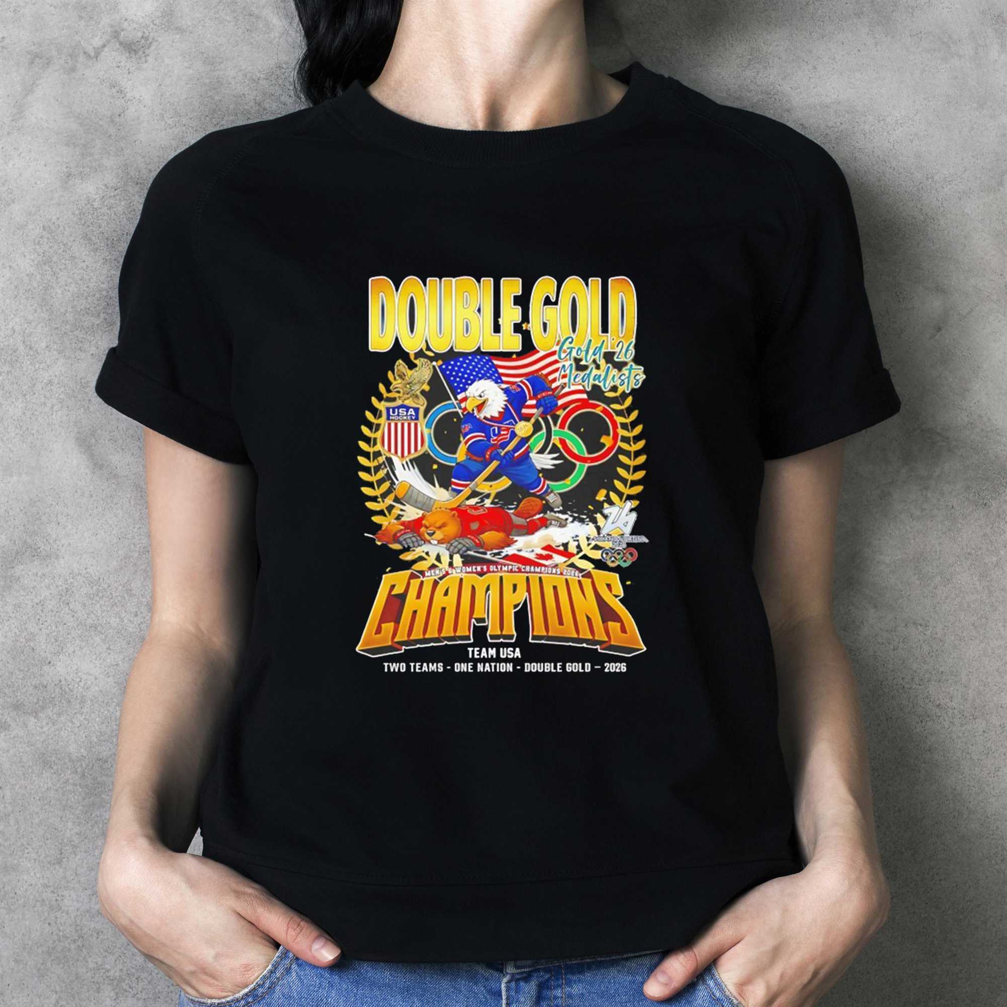 Double Gold Usa Hockey Mens And Womens Olympic Champions 2026 Team Usa Two Teams One Nation Double Gold 2026 Tee