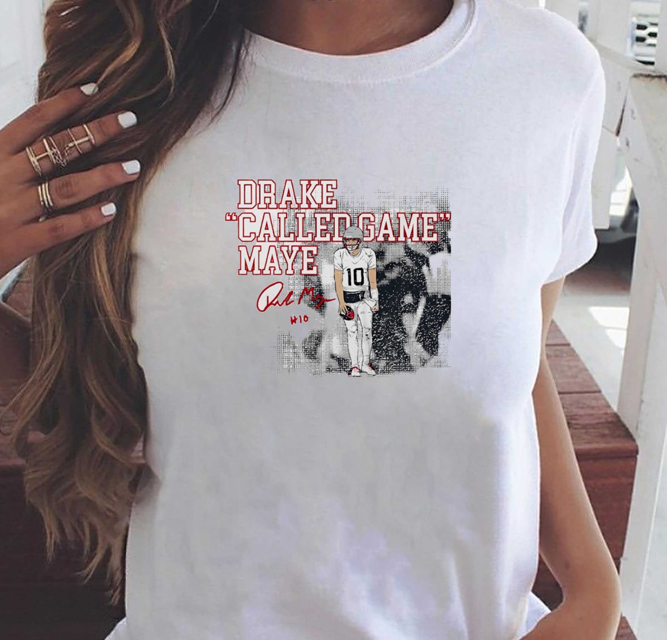 Hype up the future of one of the NFL’s most storied franchises with a design that signals a new era of dominance. The Drake Maye New England Patriots Called Game Tee is the ultimate apparel for the Foxboro faithful who are ready to see the next generational talent take the helm. The design features a high-resolution, gritty action shot of the young quarterback, capturing the intensity and focus of a clutch moment. Emblazoned across the graphic is the bold, triumphant text “CALLED GAME,” a phrase that resonates with every fan who lives for those game-winning drives. The color palette utilizes the classic Patriots navy, red, and silver tones, but presented in a modern, streetwear-inspired layout. This isn’t just a fan shirt; it’s a statement of belief in a bright future for the team. Made from a heavy-duty cotton blend, this tee provides a sturdy yet breathable fit that is ideal for game-day tailgates or watching the action from the comfort of home. The reinforced stitching at the stress points ensures it can handle the excitement of every touchdown celebration. The graphic is printed with premium inks that sink into the fabric for a soft-hand feel that won’t crack or peel. Whether you’re heading to Gillette Stadium or just representing your team in the streets, this shirt identifies you as a true supporter who knows that greatness is on the horizon. It’s time to rally behind the new leader of the offense and show your colors with pride. Get ahead of the trend and buy your Drake Maye New England Patriots Called Game Tee now—let’s go Pats!.