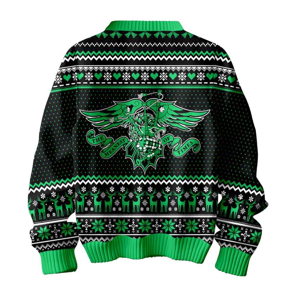 Imagine walking into your next holiday party, turning heads and sparking conversations with this eye-catching piece that combines punk rock flair with traditional holiday cheer. The bold colors and distinctive designs capture the essence of the Dropkick Murphys, making it clear that you’re not just another face in the crowd—you’re a true fan who knows how to celebrate in style.
