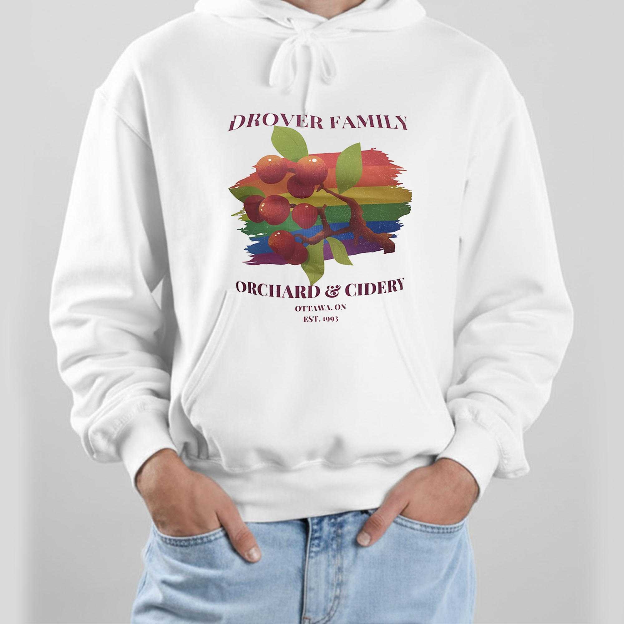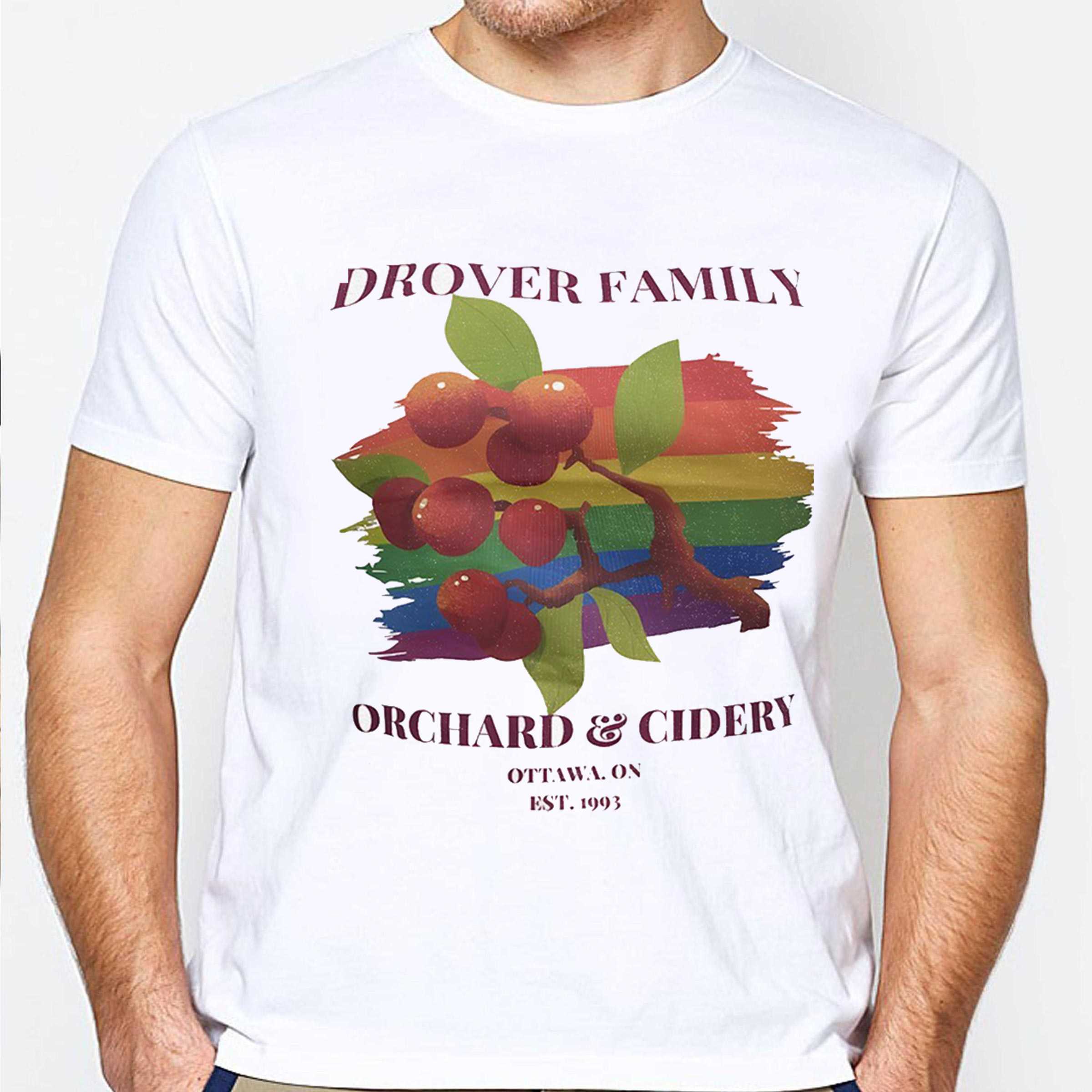 Join the family movement and celebrate the fruits of the harvest. Secure your unique look and purchase the Drover Family Orchard And Cidery Est 1993 Tee right now!
