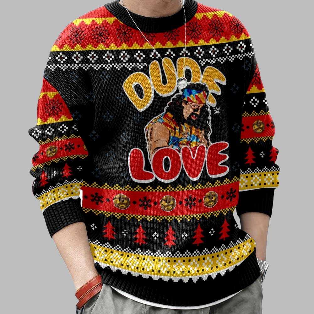 This festive piece is not just about aesthetics; it’s about embodying the spirit of fun during the holiday season. Whether you’re attending an office party or celebrating with friends and family, wearing the Dude Love Mick Foley Christmas Ugly Sweater allows you to express your love for wrestling while spreading cheer. Don’t miss out on making lasting memories this holiday season—grab yours today!. The Dude Love Mick Foley Christmas Ugly Sweater are made from a high quality wool fabric that allows the sweater to breath and regulate your body’s temperature. This active fibre is designed to react to your body’s temperature, keeping you warm in the winter and cool in the summer.