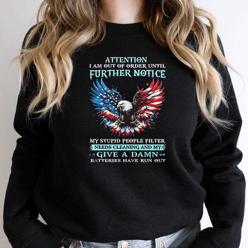 Eagle Attention I Am Out Of Order Until Further Notice Shirt